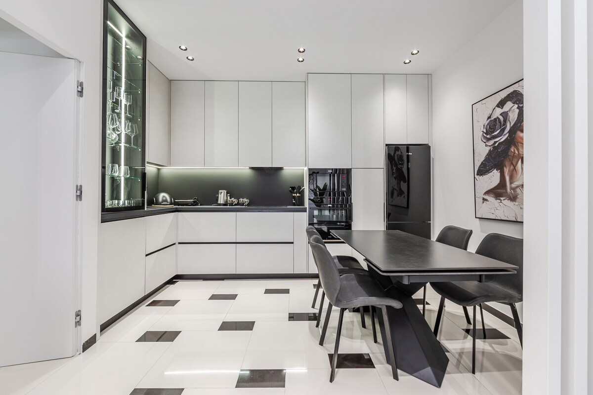 Situado en el corazón del barrio de Blloku de Tirana, este elegante apartamento en la planta superior ofrece tranquilidad y comodidad. Disfruta de una bañera relajante, una cocina totalmente equipada con lavavajillas y una gran terraza con vistas a la ciudad. Relájate en una cama tamaño queen con aire acondicionado en ambas habitaciones. Los servicios cercanos incluyen una estación de autobuses, estacionamiento de pago, gimnasio, supermercado, lago Tirana, todo a 10 minutos a pie. Ideal para un máximo de tres huéspedes. ¡Reserva ahora y disfruta de una estancia inolvidable!