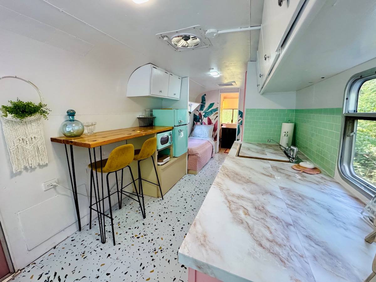 Nestled on a peaceful 10-acre homestead just minutes from Gainesville Airport, this renovated 1976 Avion La Grande offers a perfect blend of retro charm with modern touches. Enjoy walking trails, abundant wildlife, and meet our pigs (litter born 1/24/26), chickens, and goats! Features include a retro kitchen, AC, outdoor deck, and eco-friendly compost toilet. Down a quiet dirt road yet close to downtown, UF, breweries, and nearby springs. Perfect for a unique nature getaway with modern comfort