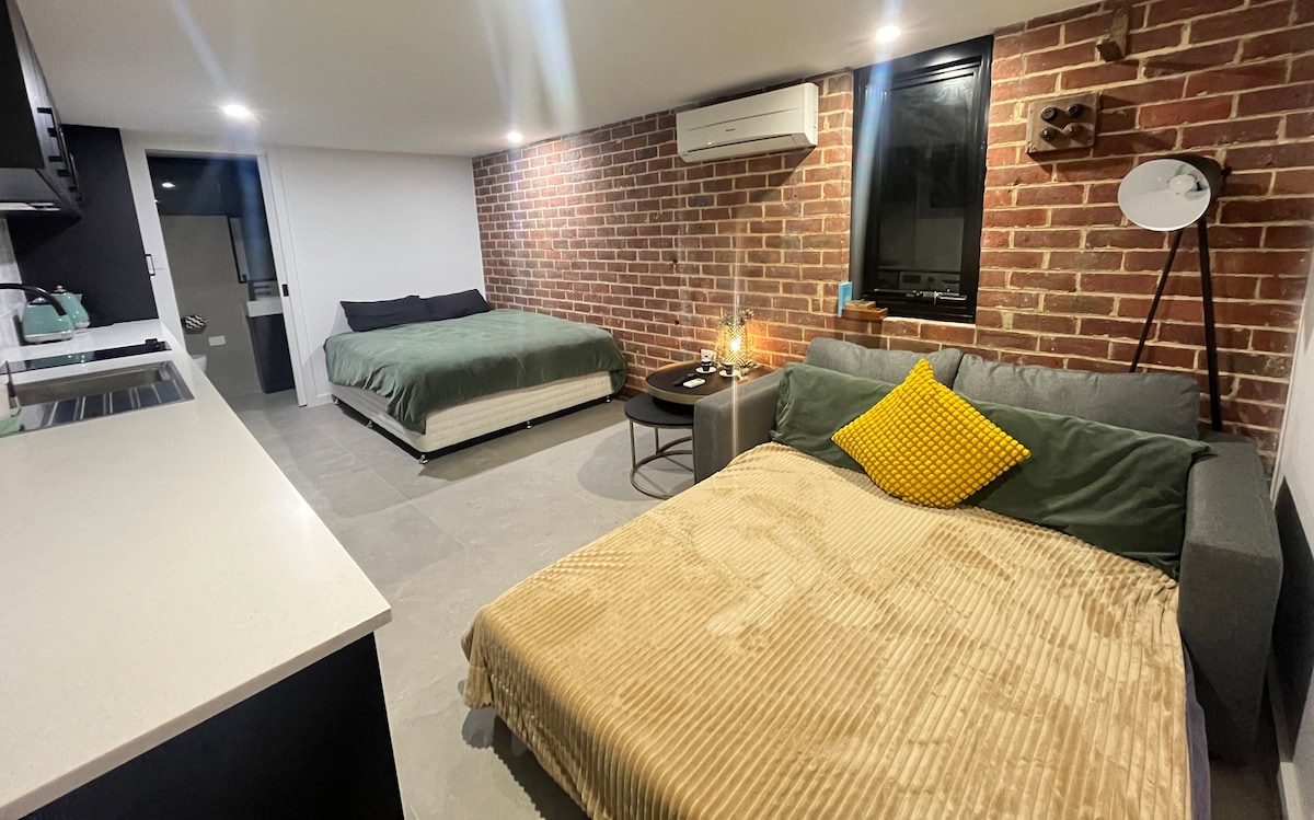 Luminoso y espacioso apartamento tipo estudio independiente de estilo europeo de 28 m2 que incluye cocina, baño y lavadora/secadora en una tranquila calle suburbana en el corazón de Mount Hawthorn, a 3 km del centro de Perth. Parada de autobús cercana, a 15 minutos de la ciudad y a 20 minutos de la playa. A poca distancia a pie de pubs, tiendas, cafeterías y restaurantes en Mt Hawthorn y Leederville. Aparcamiento disponible en la calle. Acceso al patio común seguro con barbacoa, horno de pizza, nevera/congelador adicional, cocina al aire libre y tendedero.