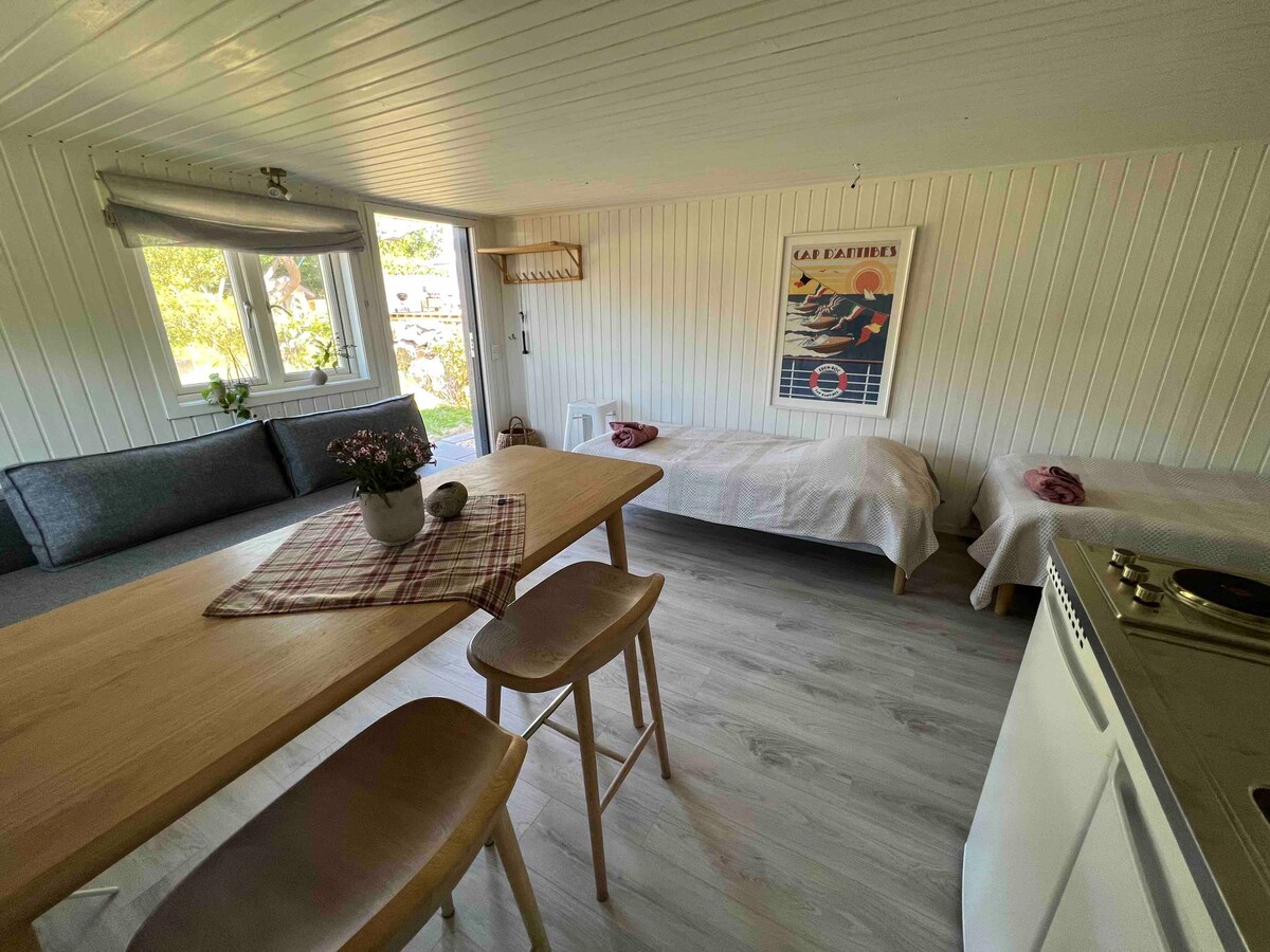 ¡Bienvenido a nuestro pequeño paraíso! En la esquina de nuestro jardín tenemos una casa que alquilamos. Se encuentra cerca del mar y de la playa en el antiguo pueblo pesquero de Träslövsläge. Si quieres alquilar esta casa por una semana o más a partir de septiembre, ¡envíame una solicitud de descuento! Esta pequeña casa (23 metros cuadrados) tiene su propio patio acogedor sobre la hierba debajo del manzano. Cerca de autobuses, restaurante, heladería y la playa (0,5 km). 6 km del centro de Varberg.