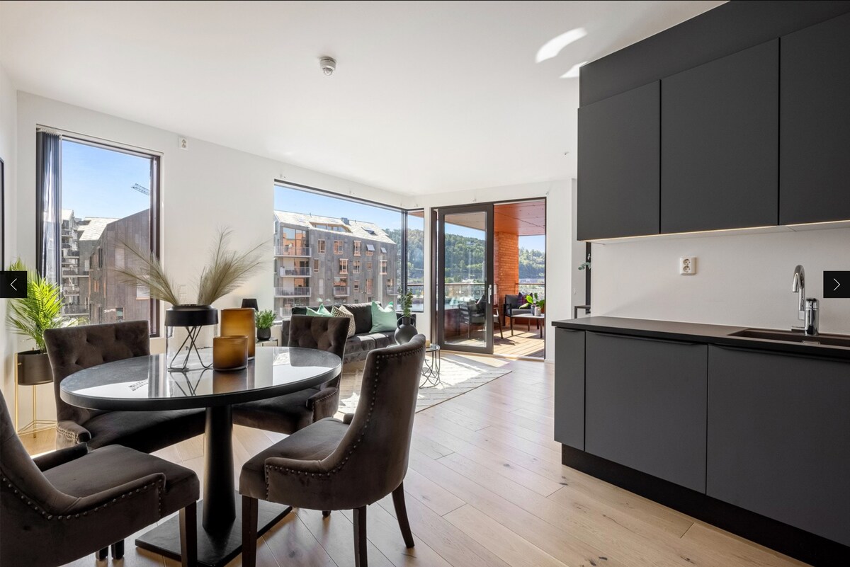 - Estacionamiento para automóviles en el sótano disponible a partir del 1 de mayo de 2026. - Vistas increíbles desde cada habitación. - Departamento abierto por 3 lados, balcones, 11.º piso. - Ascensor. Acceso sin escaleras. - Recién amueblado con muebles y comodidades escandinavos de alta calidad. - Paredes exteriores, puertas y ventanas con aislamiento acústico. Tranquilo. - Excelente conexión de transporte público, junto a la estación de tren de Oslo S. Parada de tranvía y autobús cerca. - Sala de ejercicio y supermercado en el mismo edificio. - Cerca de lugares turísticos como la Ópera, Munch, etc. - Múltiples opciones gastronómicas cercanas.