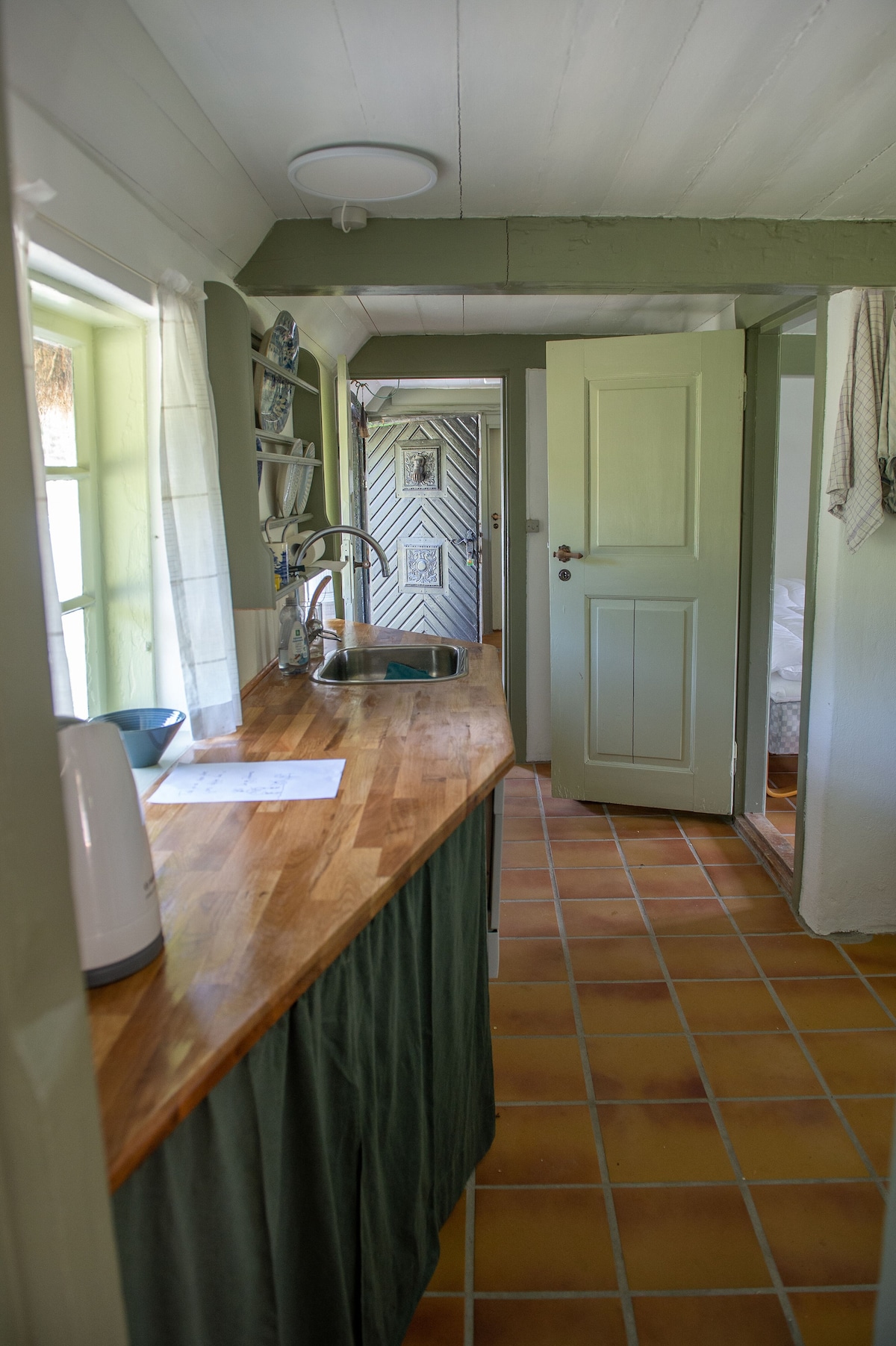 Una de las últimas 20 casas con techo de algas. La casa fue renovada en 2019 con nueva calefacción por suelo radiante, electricidad, agua y drenaje. Las ventanas se han raspado para pintar y se han repintado con pintura de aceite de linaza. Hemos conservado la mayor parte de lo antiguo de la casa y hemos reutilizado parcialmente los armarios de cocina, bancos y paneles de la iglesia de Vesterø, etc. Las cosas del propietario anterior también se reciclan, especialmente las fotos. Hay 4 camas nuevas y buenas. La televisión funciona con Chromecast El wifi no tiene código Hay una caja de seguridad en la puerta. Recibirás el código el día que llegas.