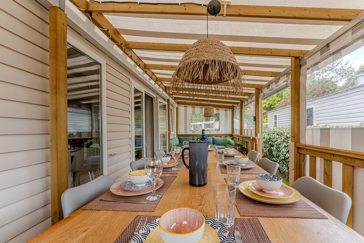 Descubrimos la península de Cap Ferret en la primavera de 2021. Nos enamoramos de esta región llena de autenticidad y romanticismo, ubicada entre la cuenca de Arcachon y el mar. Te damos la bienvenida a un nuevo y encantador bungalow de 40 m2 con terraza ubicado en una zona totalmente remodelada del camping Les Viviers, adquirido en 2019 por Siblu. ¡Eso es todo, todo está listo para darte la bienvenida! ¡Hasta pronto!