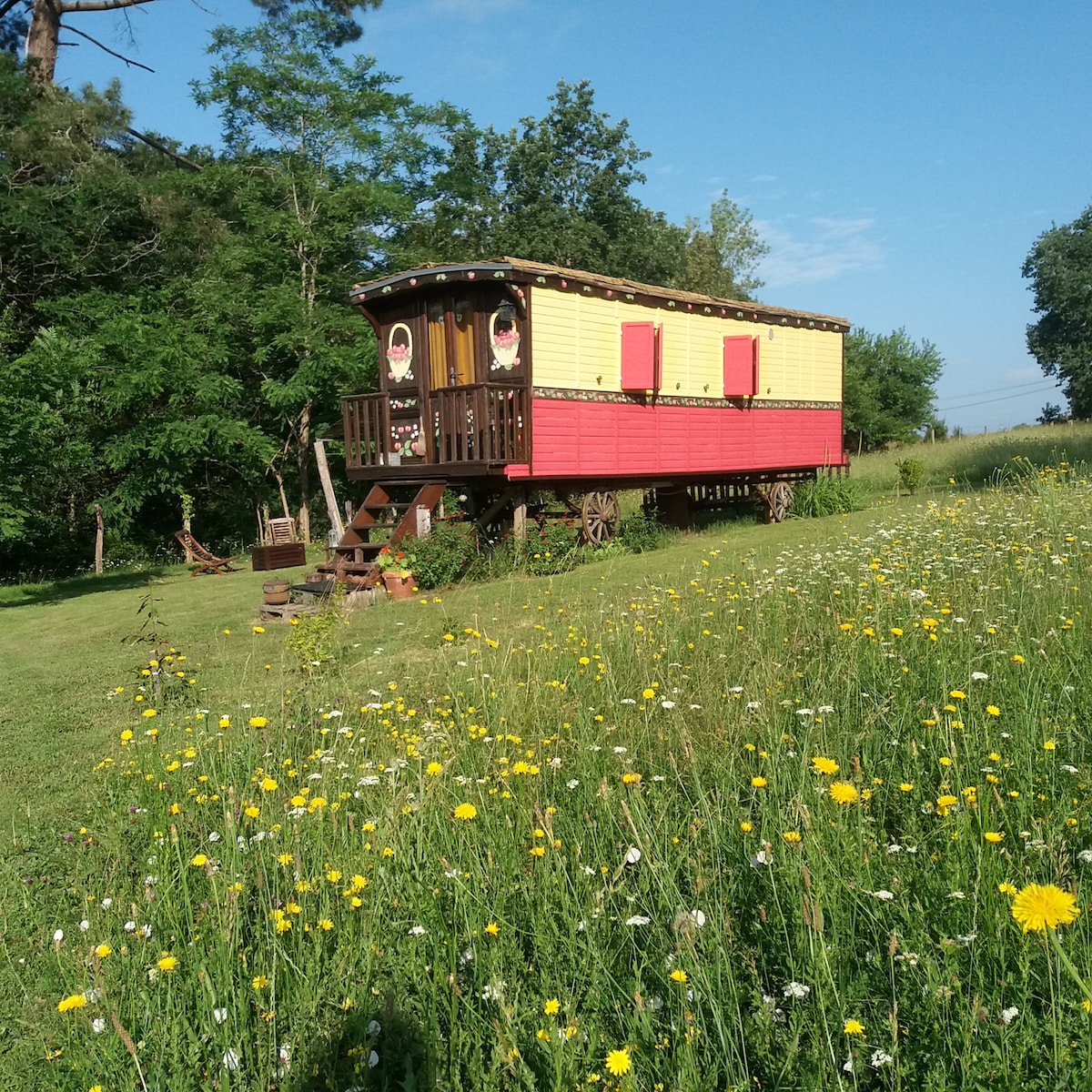 Vuelve a conectarte con la naturaleza en esta escapada inolvidable. Ven y quédate en nuestra cabaña de pastores a medida (Roulotte en francés) y disfruta de la paz y la tranquilidad de la hermosa campiña. ¡Cuenta con todas las instalaciones que necesitas para desestresarte, incluido el aire acondicionado completo!Un spa para refrescarse o calentarse y una zona de terraza para sentarse y pasar las noches con una buena copa de vino y una cocina encantadora. Cerca de las ciudades de Bastide para mercados de día y noche, restaurantes y encantadores paseos.