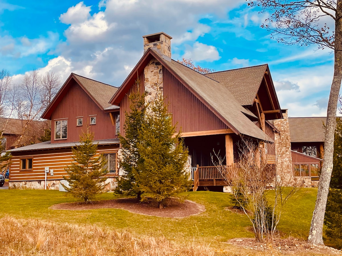 ¡Serendipity junto a las pistas! Disfruta de esta elegante cabaña de 5 dormitorios en la cima de una montaña que admite mascotas. ¡La espaciosa cabaña de esquí está a menos de 100 yardas del telesilla WISP 4! + Carga EV para tu coche. En verano, camina al lado del centro de aventuras ASCI con rafting en aguas bravas y las mejores puestas de sol de verano. El lago está a menos de 5 minutos en coche. En otoño, disfruta de la belleza de los majestuosos árboles y, en primavera, disfruta de la tranquilidad y las vistas pacíficas desde las grandes ventanas o mientras te relajas en el jacuzzi del patio.