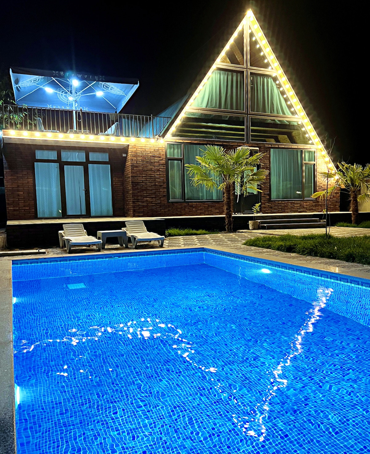 ¡Te damos la bienvenida a nuestra acogedora cabaña A-Frame en Gabala! Ideal para familias o amigos, tiene capacidad para 8 personas con 3 dormitorios, una amplia sala de estar y un sofá cama. La casa incluye 2 baños (1 en el interior, 1 en el patio), conexión Wi-Fi gratuita, TV y calefacción central. Ubicado detrás de 777 Tea House en la nueva carretera del hospital, con hermosas vistas a la montaña, ¡un refugio tranquilo en la naturaleza!