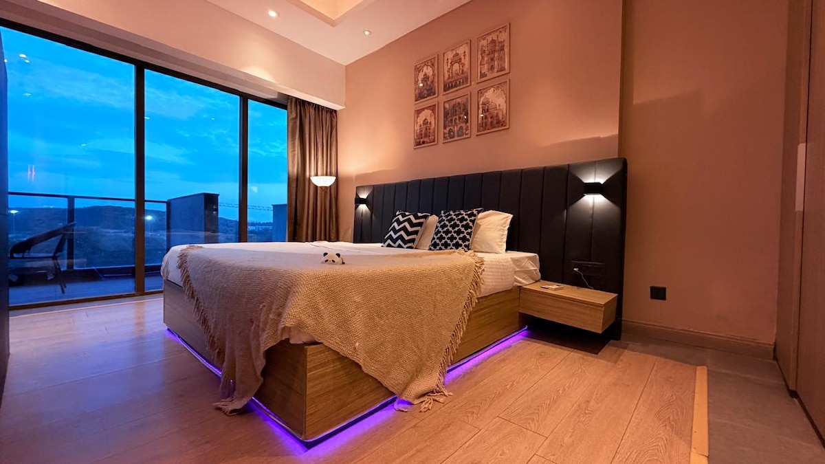 Estudio premium en Golf Course Road | A poca distancia a pie del metro, a 10 minutos de Cyber Hub ¡Te damos la bienvenida a tu hogar lejos de casa! Este elegante apartamento estudio está en Golf Course Road, a solo 5 minutos a pie de la estación de metro Sector 55 y rodeado de algunos de los mejores restaurantes y lugares de vida nocturna de Gurgaon, como Comorin & Whisky Samba. Perfecto para viajeros de negocios, expatriados o parejas que buscan una estancia cómoda y moderna.