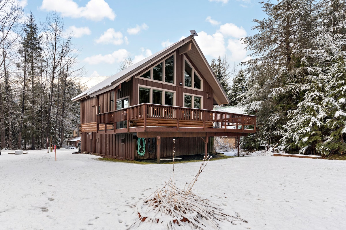 Ubicado cerca de la base de la estación de esquí de Alyeska, Girdwood, Alaska. Nuestro chalet de 3 dormitorios, totalmente equipado, de 2400 pies cuadrados, está listo para cualquier vacación y nos comprometemos a hacer que sea una gran estadía para ti y tus huéspedes. Ideal para parejas, familias o grupos pequeños. A poca distancia a pie de telesillas, pistas de esquí y senderismo XC, tiendas, restaurantes y más. Esta ubicación ofrece una combinación perfecta de vistas y proximidad al acceso a la montaña, al tiempo que proporciona la tranquilidad silenciosa de un acogedor Mt. Chalet.