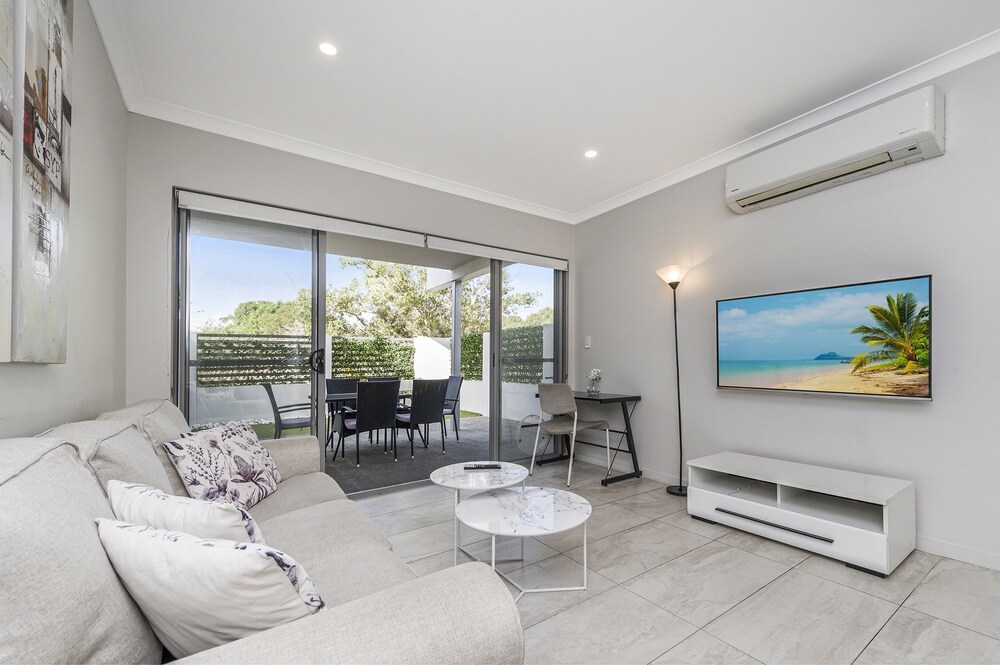 Nueva villa funky de estilo balinés. Hermoso flujo interior al aire libre cuando se abre. Entrada segura con tarjeta de teclado con estacionamiento encubierto fuera de la calle. Piscina compartida (climatizada - 3 temporadas excepto invierno) disponible durante el día con característica de cascada. 2 dormitorios, televisores en todas las habitaciones con Netflix, Stan y Prime conectados, Bluetooth wifi estéreo, aire acondicionado a todas las habitaciones, chimenea interior, pequeña biblioteca ¡Nueva incorporación! Habitación Deluxe Queen nueva disponible como cargo adicional.