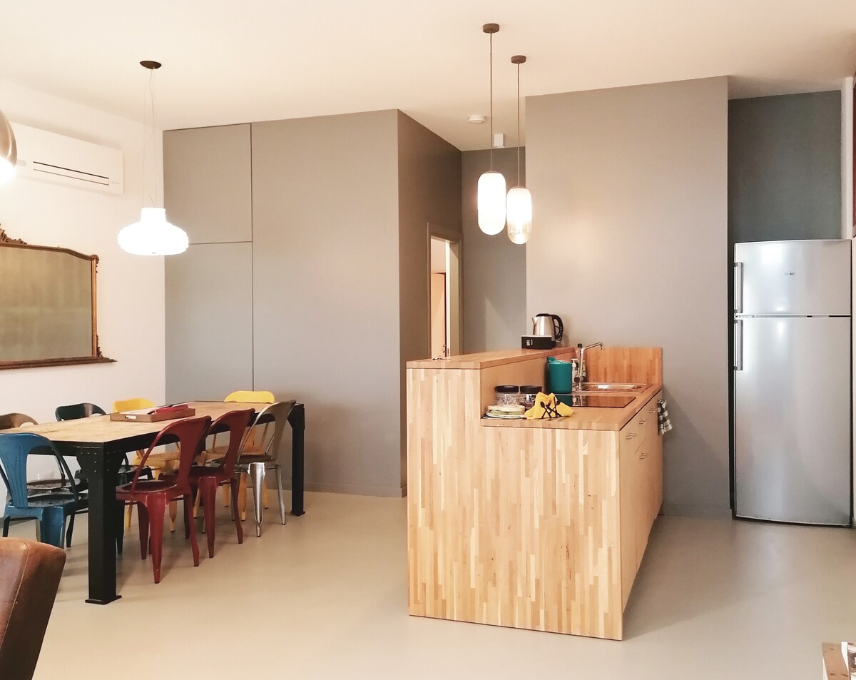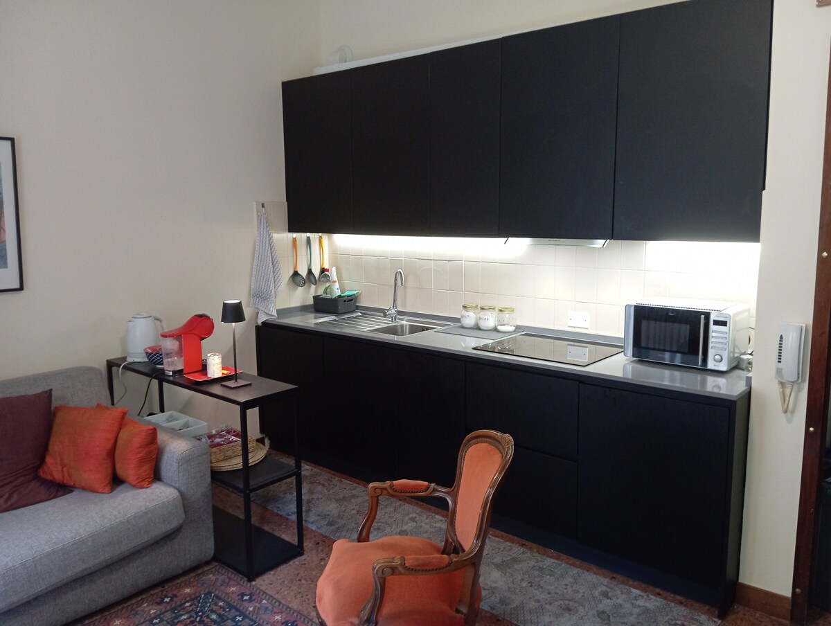 El apartamento está en una construcción muy reciente. Una fábrica anterior al siglo XIX ha sido hábilmente renovada para obtener casas en dos niveles, autónomas y con vistas a un patio interior privado. El acceso al patio es a través de una antigua puerta en el espléndido canal de Giudecca frente a la iglesia de S. María del Rosario y cerca de la iglesia del Redentor. El mobiliario es nuevo, esencial, moderno y con algunos toques de color. La entrada se realiza con un código en el teclado electrónico.