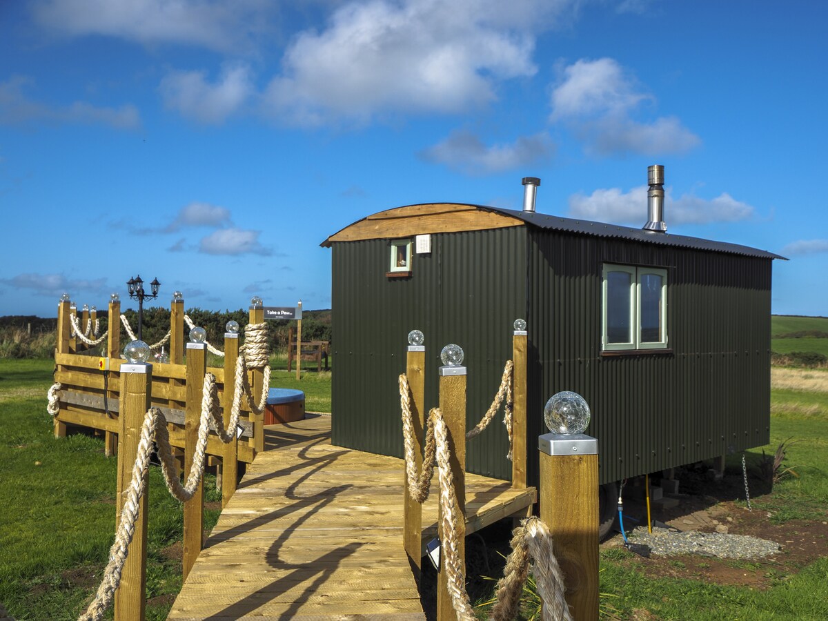 Romántica casa de campo de Pembrokeshire en un hermoso terreno de 3 acres con sauna, estanque natural (depende de la lluvia), sala de juegos y kayaks. Paseos por la colina en la puerta, impresionantes playas y paseos por los acantilados cercanos. Contempla las estrellas desde una cómoda cama tamaño king. Acurrúcate junto a una estufa de leña (madera gratuita). Amplio baño con bañera, ducha y calefacción por suelo radiante. Cocina bien equipada con cafetera. Zona de estar exterior cubierta con chimenea y barbacoa. Internet de fibra, TV inteligente (Netflix, etc.). Se admiten 2 perros que se porten bien.