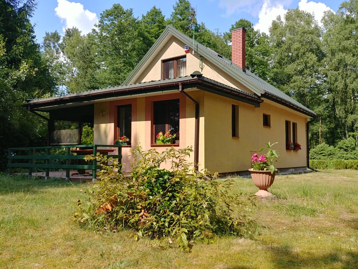 Te invito a una casa de campo atmosférica ubicada a 40 km de Varsovia, rodeada de naturaleza, con vistas a prados y bosques, sin vecinos, sin ruido. ¿Qué te está esperando? * acogedora sala de estar con chimenea (¡madera incluida!) – perfecta para el vino de la noche o un libro * cocina totalmente equipada * gran barbacoa y fogata * 2 habitaciones: alojamiento cómodo para 1–6 personas * Lote vallado: seguro y cómodo para mascotas también * CERO VECINOS: máxima privacidad y tranquilidad * Forrest enfrente