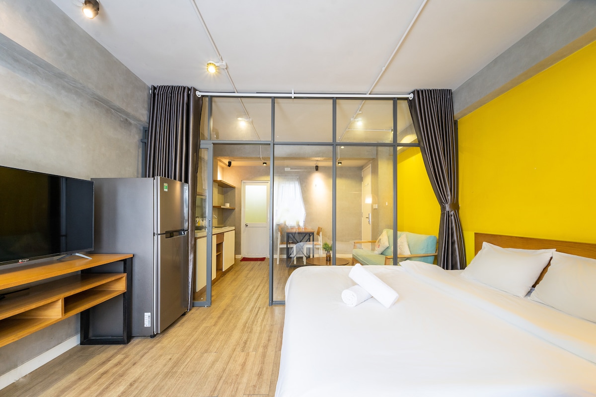 ¿Sois viajeros que buscan una estancia corta y cómoda durante las escalas? ¡Aquí lo tienes! Disfruta de una experiencia acogedora y sin complicaciones, perfecta antes de partir hacia tu próxima aventura. Somos Le Lotus Blanc Saigon. ♥ Ubicación: junto al aeropuerto de Tan Son Nhat (a 5-10 minutos a pie). ♥ Planta: habitación 103, 1ª planta en edificio con ascensor. ♥ Tamaño: 30 metros cuadrados ♥ Tipo: Estudio ♥ A 200 metros: restaurantes, supermercados, tiendas, farmacias, cafeterías, peluquerías, uñiclas...