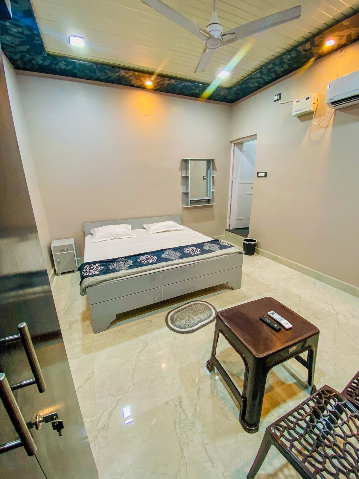 🌸 Cómoda estancia de 2 BHK cerca de Ram Mandir, Ayodhya 🌸 Disfruta de una estancia tranquila y cómoda a solo 1,5 km de Ram Mandir 🏡 LO más destacable: -2 dormitorios con aire acondicionado, mantas y balcones. - Sala de estar con sillas y mesa. - Baños con géiseres para agua caliente. - Cocina con nevera, RO, utensilios, gas y cilindro - Colchones adicionales para los huéspedes. Seguridad CCTV y estacionamiento disponibles 📍 Ubicación: - Ram Mandir a 1,5 km. - Estación de Ayodhya Dham – 1,5 km - Ayodhya Cantt: 7 km. - Carretera principal: 300 m.