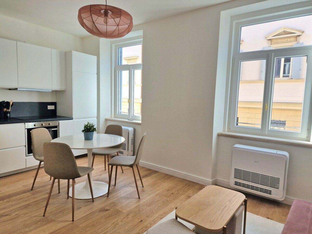 Odkrijte svetlo, mirno in intimno stanovanje z umetniškim pridihom, le nekaj korakov od zgodovinskega središča Gorice, tik ob meji med Italijo in Slovenijo. Do naslednjih točk vas loči le nekaj minut hoje: • center Gorice • lekarna, očarljive kavarne in trgovinice • slovenska meja in Nova Gorica • avtobusna ter železniška postaja, ki povezujeta z bližnjimi mesti • glavna ulica Via corso • sodišče Stanovanjski blok je miren in prijazen, zato vljudno prosimo za spoštovanje hišnih pravil. Hvala