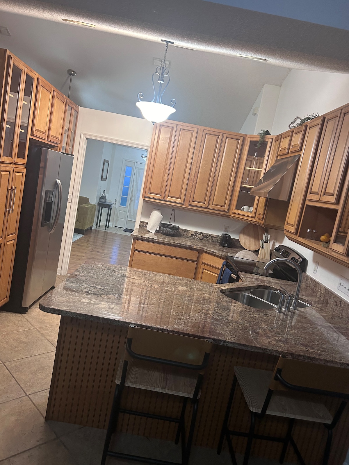 Hermosa casa recién remodelada situada en el centro. 3 dormitorios (2 tamaño king y 1 tamaño queen) y 2 baños completos (1 ducha a ras de suelo con barras de sujeción). Aparcamiento techado. ¡Patio enorme y privado para disfrutar! Cómoda sala de estar con TV de pantalla grande, sofás y sillones reclinables Lazyboy. Cocina completamente equipada para poder cocinar. Escritorio y silla de oficina. Lavadora y secadora. A 10 minutos de Universal Studios y a pocos minutos más de International Drive, Mall of Millenia, Florida Mall o Disney. Tienda de comestibles, licores, pizza, chino a 5 minutos a pie.