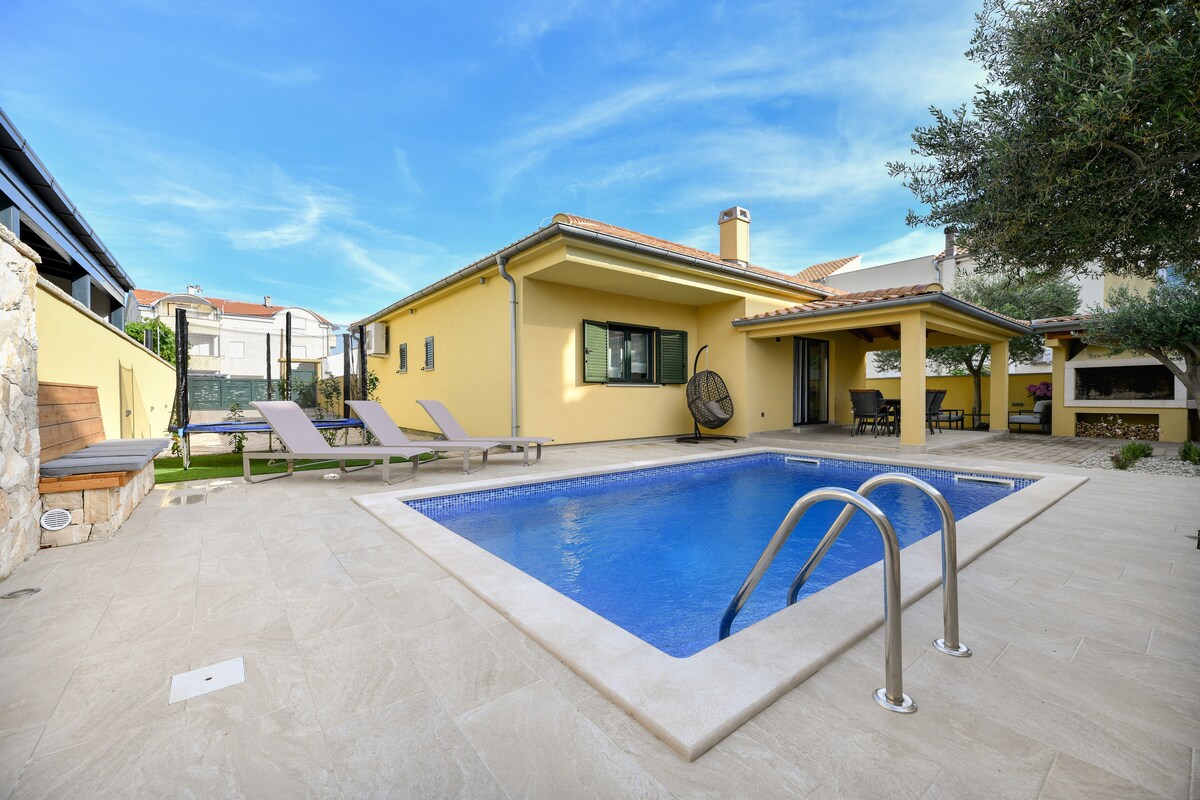 Esta villa única se encuentra cerca de la playa y del centro de la ciudad. Es el lugar perfecto para pasar unas vacaciones inolvidables con tus familiares y amigos. Nuestros huéspedes pueden relajarse en sauna privada y jacuzzi. La villa completa tiene aire acondicionado. La villa consta de tres dormitorios y un dormitorio tiene su propio baño, sala de estar con comedor y cocina. Nuestra propiedad está a 30 minutos en coche del aeropuerto y a 15 minutos en coche de Zadar. Nuestros huéspedes tienen WIFI gratuito, estacionamiento y parrilla.