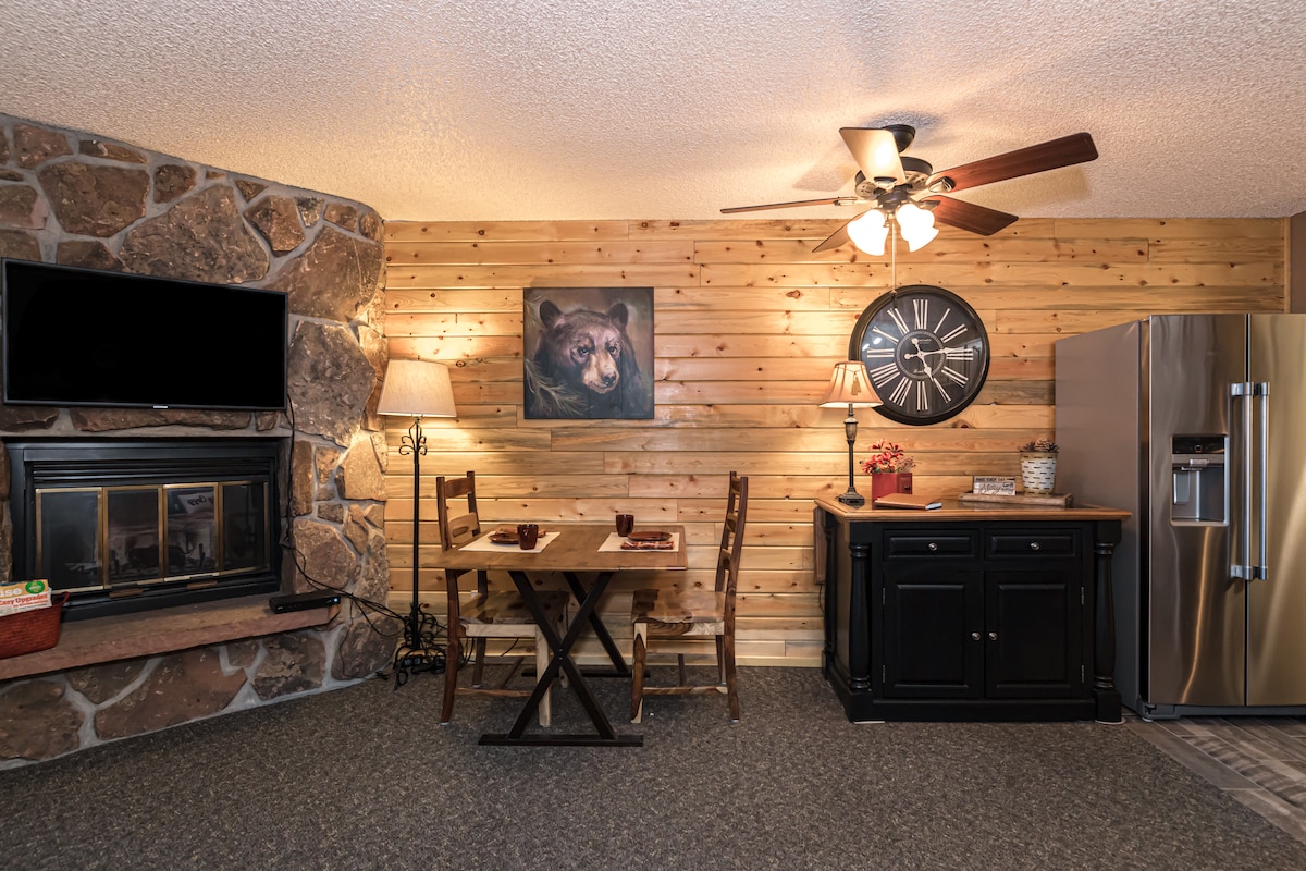 Debes tener 21 años o más, no se permite fumar ni traer mascotas. El centro vacacional fue construido en 1982, las áreas comunes lo reflejan. Servicio de limpieza profesional desinfectante. WalkOut Studio (una habitación) con patio, estanque, fuente y vistas a la montaña, 495 pies cuadrados, chimenea, cocina completa, baño completo, TV FS de 55 pulgadas, wifi y cable. El centro vacacional ofrece muchas comodidades. Cama queen plegable y sofá cama queen. Piscina climatizada, jacuzzi, sauna, gimnasio, RB y canchas de tenis.