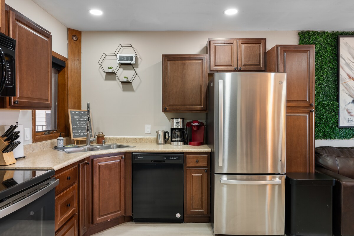 ¡La escapada perfecta! Recientemente renovado con acabados de alta gama y meticulosamente cuidado, ¡este acogedor condominio está esperando ser tu hogar lejos de casa! El acogedor estudio tiene capacidad para hasta 4 personas con una cómoda cama tamaño king y un sofá cama con un colchón de espuma viscoelástica para la máxima comodidad. Las comodidades del centro vacacional incluyen restaurante, sala de juegos, estación de trabajo, salón, alquiler de esquís, natación, sauna, jacuzzi, tenis, raquetbol y servicio de traslado de esquí. Parque nacional de las Montañas Rocosas, Gran Lago y Parque de Invierno cerca.