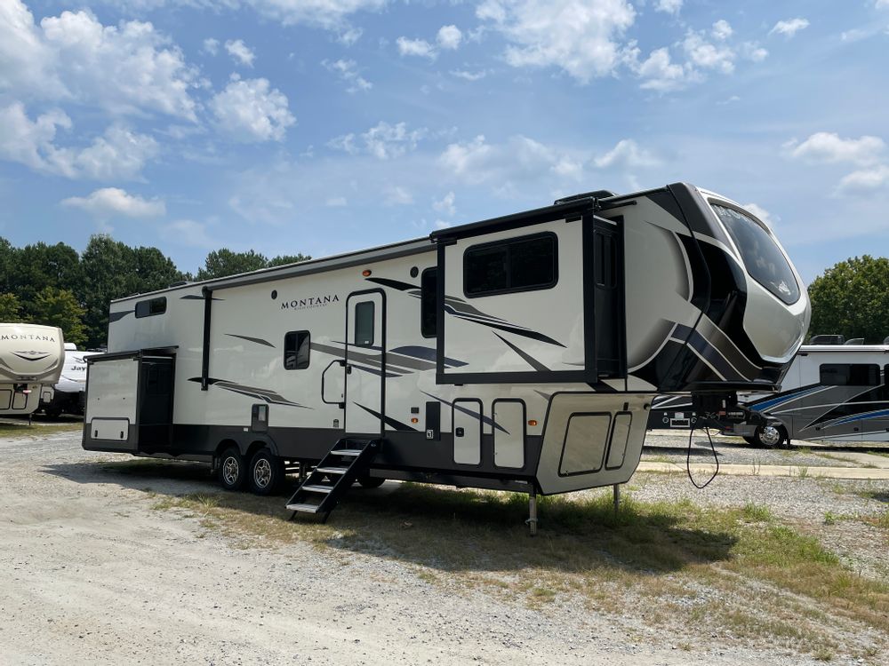 Disfruta de los sonidos de la naturaleza cuando te quedes en este lugar único. ¡Tú proporcionas el LUGAR y nosotros los entregamos! Increíble 2022, 42' Montana High Country, quinta rueda, tiene capacidad para 8. Ubicado en la hermosa región de Grand Traverse. A minutos del lago Michigan, Grand Traverse Bay, las dunas de Sleeping Bear y mucho más. Hay bodegas, casinos, playas y naturaleza para disfrutar.