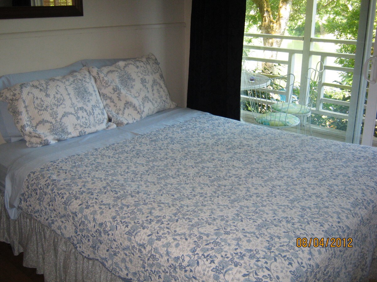 Your private suite has everything you need for a relaxing getaway or longer term stay. This ground floor suite features one queen bed, one twin pull out sofa, riverfront deck, private bath, luxury bedding, fully stocked kitchen, organic fair-trade coffee, plastic-free amenities, WiFi, cable tv, AC & heat. We are family and pet friendly with 2 acres of lawn, garden and river access. Feel free to watch the river, fish, barbecue or play badminton on the pesticide/herbicide-free grounds.