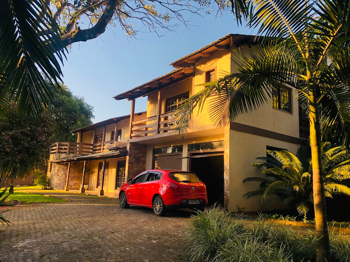 Casa de campo en el condominio rural. Mucha naturaleza y conserje las 24 horas. Está a 20 km de Novo Hamburgo y São Leopoldo, a 40 minutos de la capital, a 1 hora de Gramado y a 1 hora de Vale dos Vinhedos. Amplio espacio, vallado para que la familia y su mascota se diviertan. Con un parque infantil, una piscina para días calurosos y una chimenea para calentar las noches de invierno. Todo para que disfrutes de la vida en el campo y recargues las pilas. ¡Ven a pasar días increíbles! Exclusivo para alojamiento. No se permiten eventos, fiestas y similares.