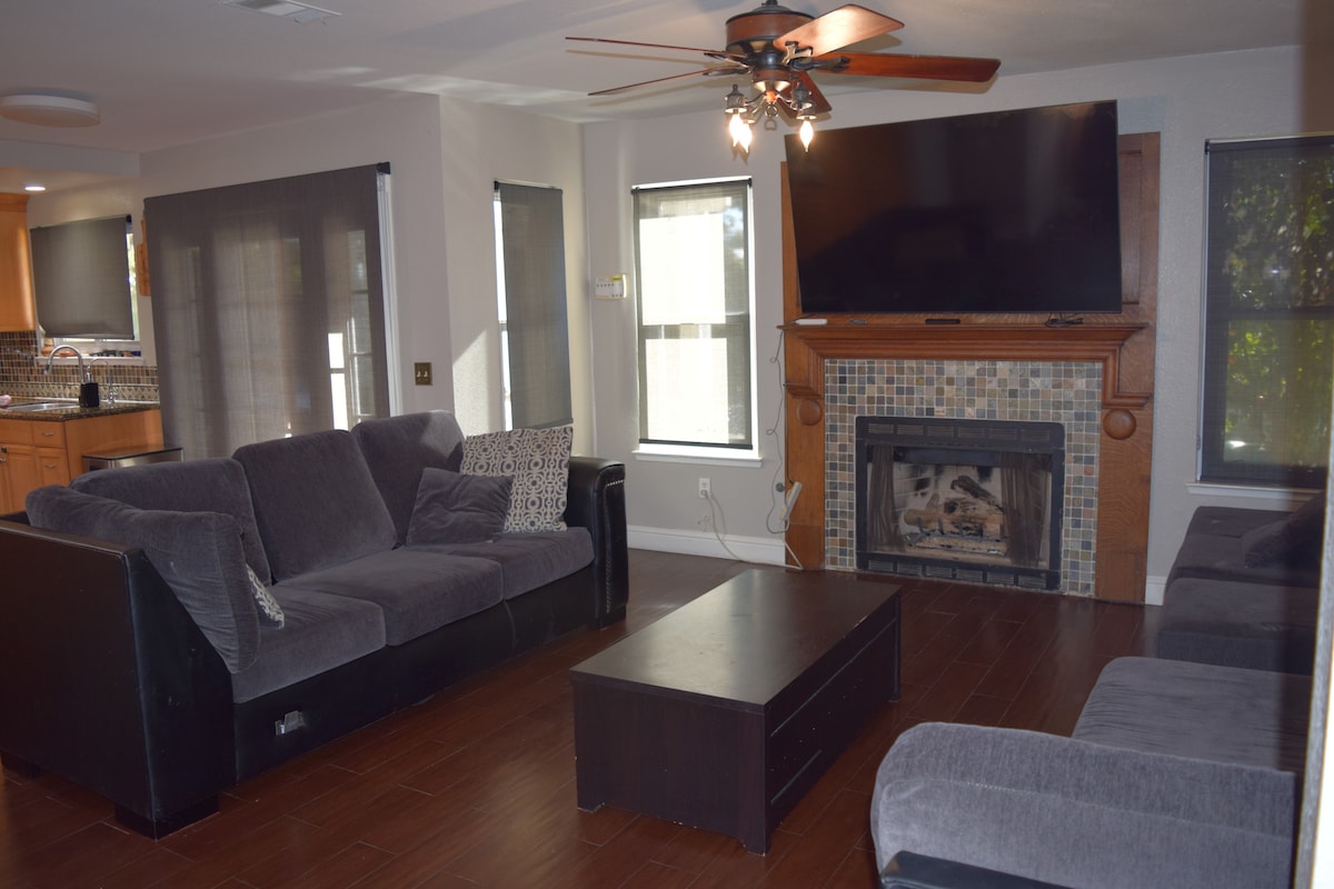 Acogedora casa con un bonito patio trasero. Perfecta para una noche tranquila disfrutando de un poco de vino junto al fuego exterior mientras escuchas el sonido del agua en el estanque. Ideal para una escapada en pareja o familias que viajan. Estamos cerca de todo... a 5 minutos de la autopista 99 y a unos 10 minutos del centro de Modesto. Estamos a 20 minutos de Turlock y a 15 minutos de Manteca. A poca distancia a pie del centro comercial Save Mart, restaurante, etc. Tenemos un jardinero que viene los jueves por la mañana y corta el césped del patio delantero y trasero.