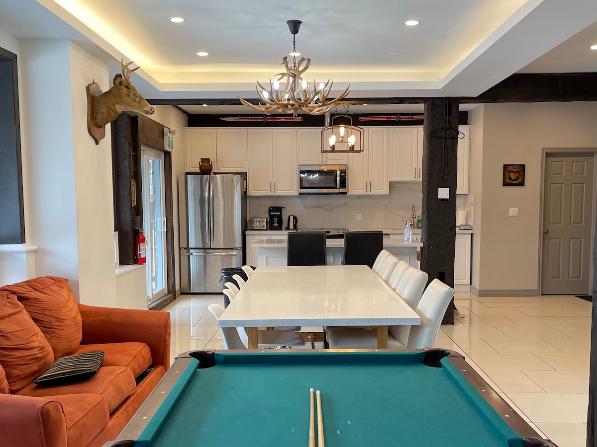 Este chalet de esquí está a solo 13 minutos a pie del telesilla más cercano. Tenemos jacuzzis al aire libre, una sauna cubierta y entretenimiento como una mesa de billar, videojuegos y un televisor HD grande de 75 pulgadas para tus noches de cine. Rodea a tus amigos/familias alrededor de nuestra cocina renovada, la gran isla central y la gran mesa del comedor. Siéntate en nuestro solárium cubierto para tomar un café por la mañana o disfrutar de tu comida de barbacoa durante todo el año. No te preocupes y deja tu auto en nuestra casa: a solo 7 minutos a pie del pueblo.