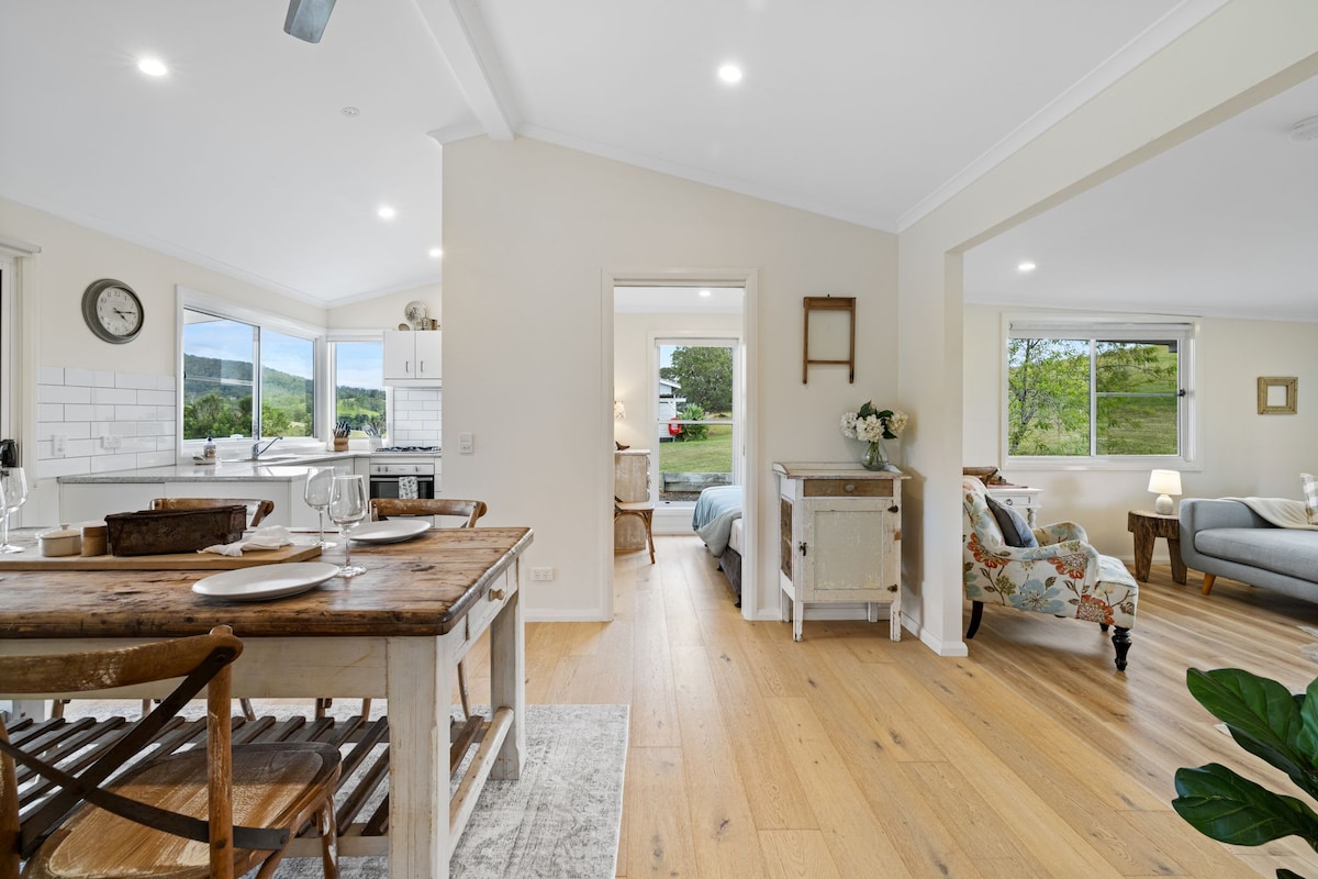Sky Cottage es la combinación perfecta de elegancia, comodidad y vistas impresionantes. Ubicada en la caldera del monte Warning (Wollumbin), esta exquisita casa de campo hecha a mano está a un paso del vibrante pueblo de Tyalgum y a 20 minutos en coche de la bulliciosa ciudad de Murwillumbah. Construida en 2020, Sky Cottage es una rareza, que cuenta con innovación moderna con comodidad rural y una estética vintage. Disfruta de amplias vistas a la montaña, wifi ilimitado y una variedad de opciones de aventura o relajación.