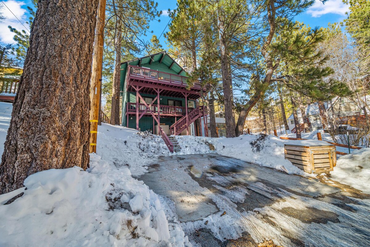 Alójate en una auténtica cabaña de madera con forma de A en Green Valley Lake, ubicada en un bosque tranquilo entre Big Bear y Lake Arrowhead, a poca distancia a pie del lago privado. Los techos altos y la escalera de caracol ponen de relieve el diseño clásico de la casa triangular. Dos habitaciones en la planta principal ofrecen comodidad y privacidad, mientras que un espacioso loft con vistas a la sala de estar sirve como una tercera habitación flexible o como un acogedor segundo espacio habitable, perfecto para parejas, familias y grupos durante todo el año.