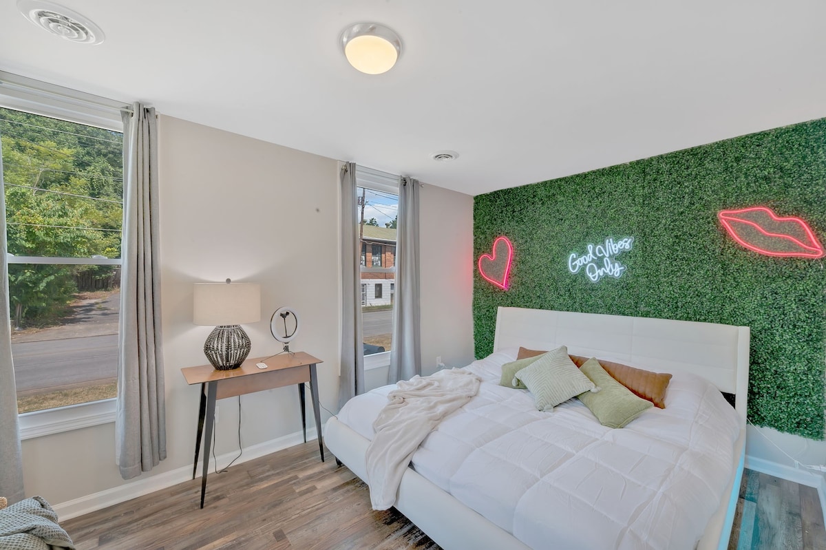 ¡Te damos la bienvenida a nuestro encantador centro de Greeneville Airbnb! Ubicado a pocos pasos de Main Street, nuestro acogedor refugio ofrece la mezcla perfecta de comodidad y entretenimiento. Disfruta de una vibrante sala de juegos equipada con un televisor de pantalla grande, perfecto para noches llenas de diversión. ¡Disfruta de lo mejor de Greeneville a la vuelta de la esquina! Esta es una de las 3 unidades en total. Esta unidad está en el nivel inferior con un dormitorio (cama tamaño king) y un sofá cama en la sala de estar.