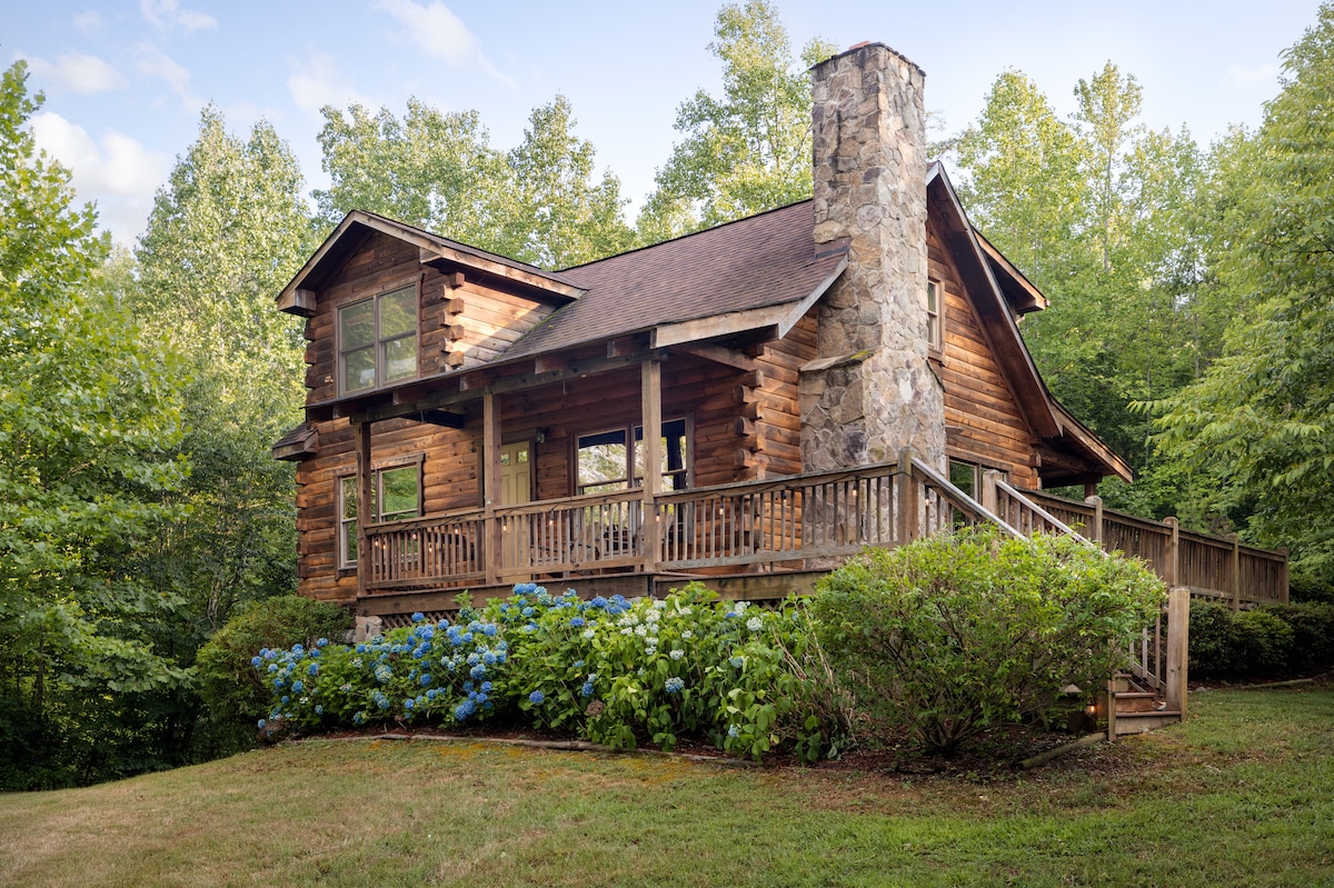 Encantadora cabaña de troncos enclavada en un valle junto al Parque Nacional Shenandoah, es un refugio ideal para una escapada romántica. El primer piso cuenta con una hermosa cocina, comedor, baño completo con bañera de hidromasaje y una acogedora sala de estar con chimenea de leña. El segundo nivel alberga el dormitorio con una cómoda cama tamaño king y un medio baño. Hay dos porches donde los huéspedes pueden relajarse con su café de la mañana o cócteles por la noche mientras disfrutan de las vistas a los bosques y a las montañas.