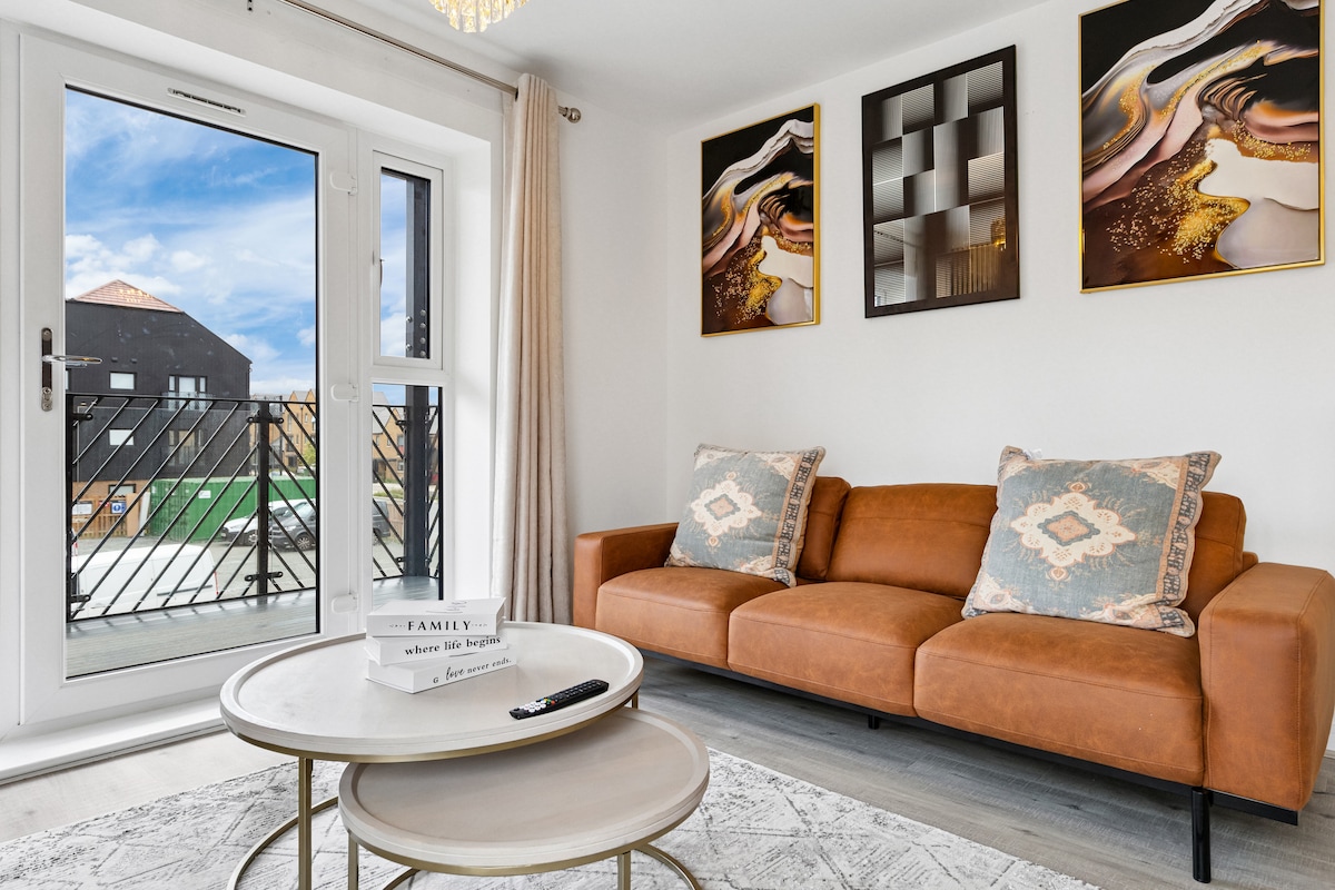 ¡Quédate con estilo en este nuevo y moderno apartamento de 2 camas junto al centro comercial Lakeside! Compra, cena y sumérgete en la vida nocturna, con Londres a solo 20 minutos a través de la A13. ¡Bluewater también está a solo 15 minutos! Capacidad para 4 personas con 1 baño + baño privado, cocina completa, balcón con sillas y mesa de jardín, Televisor inteligente de 65 pulgadas, wifi gratuito, toallas y ropa de cama. Perfecto para familias, amigos, grupos y viajes de negocios. 1 espacio de estacionamiento gratuito. No se permiten fiestas ni eventos. Limpieza reluciente, ambiente fresco y listo para tu próxima aventura