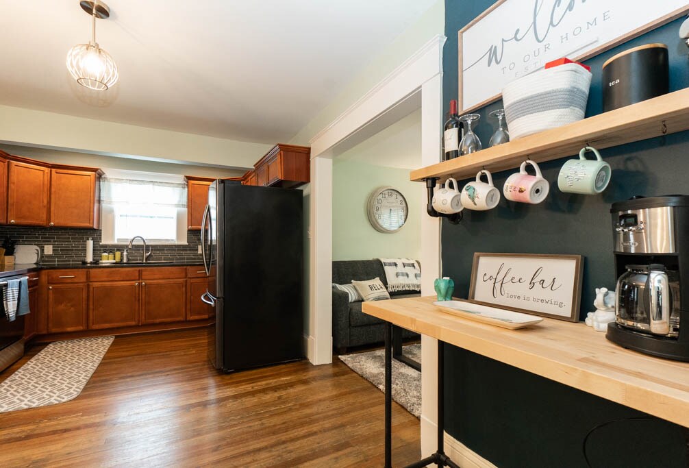 The Flat at Friendly es un apartamento renovado de 700 pies cuadrados en el nivel inferior de una casa de mediados de siglo, a 4 minutos a pie del Friendly Center; el principal destino comercial, gastronómico y de entretenimiento de Greensboro que rodea a The O'Henry y Proximity Hotels. Cuenta con una elegante sala de estar, cocina moderna, baño nuevo y dormitorio queen. La entrada sin llave facilita el registro y el registro. Red WIFI 5G. Camina hasta dos de las atracciones al aire libre más visitadas del área: el Jardín Bog y el Jardín Bicentenario.