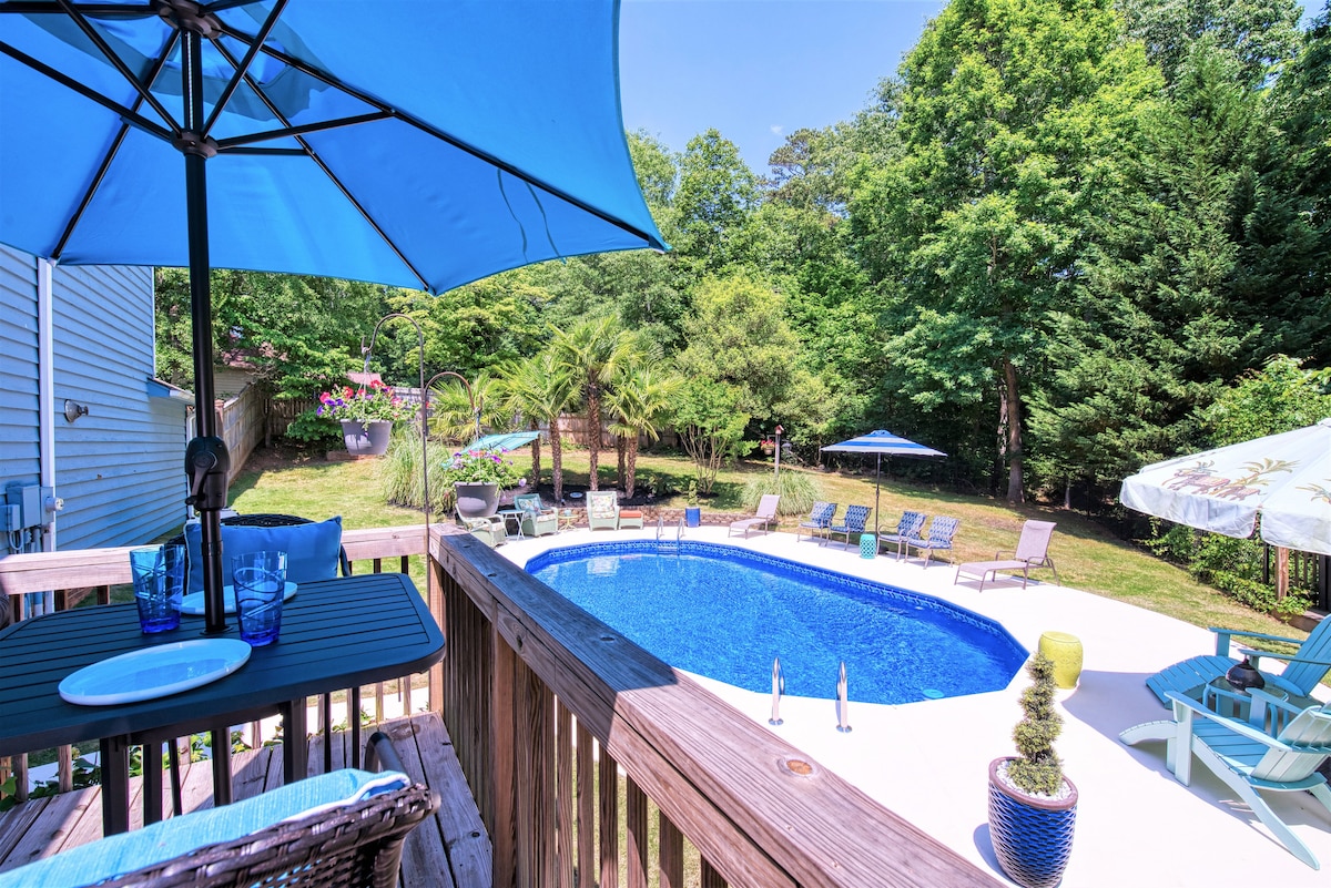 Hermosa casa de 2 pisos actualizada en un medio acre aislado y vallado con aspecto de resort. Piscina de agua salada enterrada. Cenador con mosquitera, ventiladores de techo e iluminación. Entrada sin llave. Los dormitorios están arriba, todos incluyen televisores inteligentes y espacios de trabajo. Internet de alta velocidad. Baños con una variedad de comodidades. Cuarto de lavandería. Cocina totalmente equipada y parrilla de propano. Perfecto para escapadas familiares, profesionales que trabajan, aventureros al aire libre, aficionados al deporte, apto para niños. Garaje para 2 coches. Barrio residencial tranquilo.