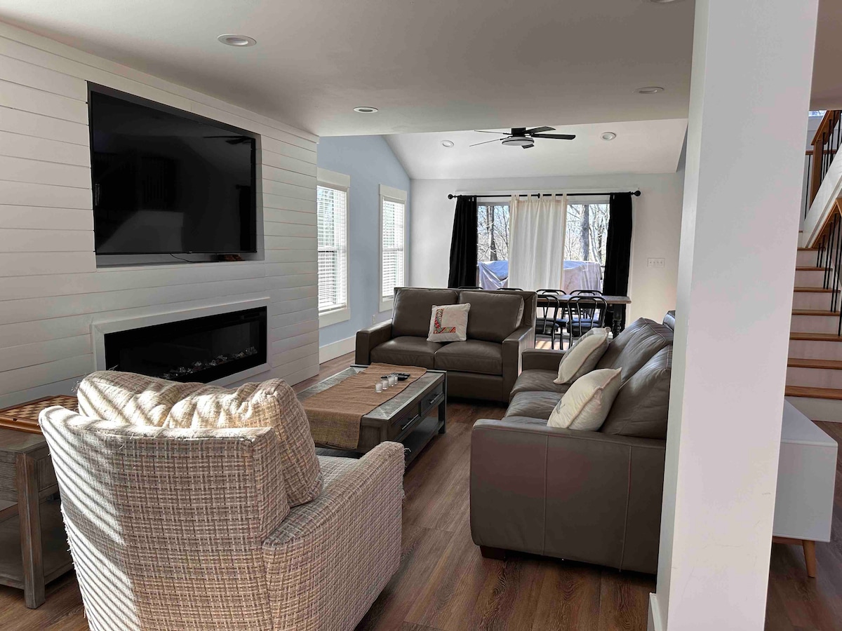 Bienvenido a Mountain Modern Base Camp, donde podrás disfrutar de la soledad de la naturaleza mientras estás a poca distancia en coche de actividades ilimitadas. La propiedad privada de más de 7 acres ofrece una chimenea al aire libre, cancha completa de pickleball y baloncesto, arroyo para disfrutar (con una pequeña cascada), chimenea con vistas a la Techo de 30' con grandes ventanales en las principales salas de estar y loft. La cocina, las salas de estar, el loft, los patios y los bosques están perfectamente preparados para que todos tengan su propio espacio o estén juntos durante su estancia.