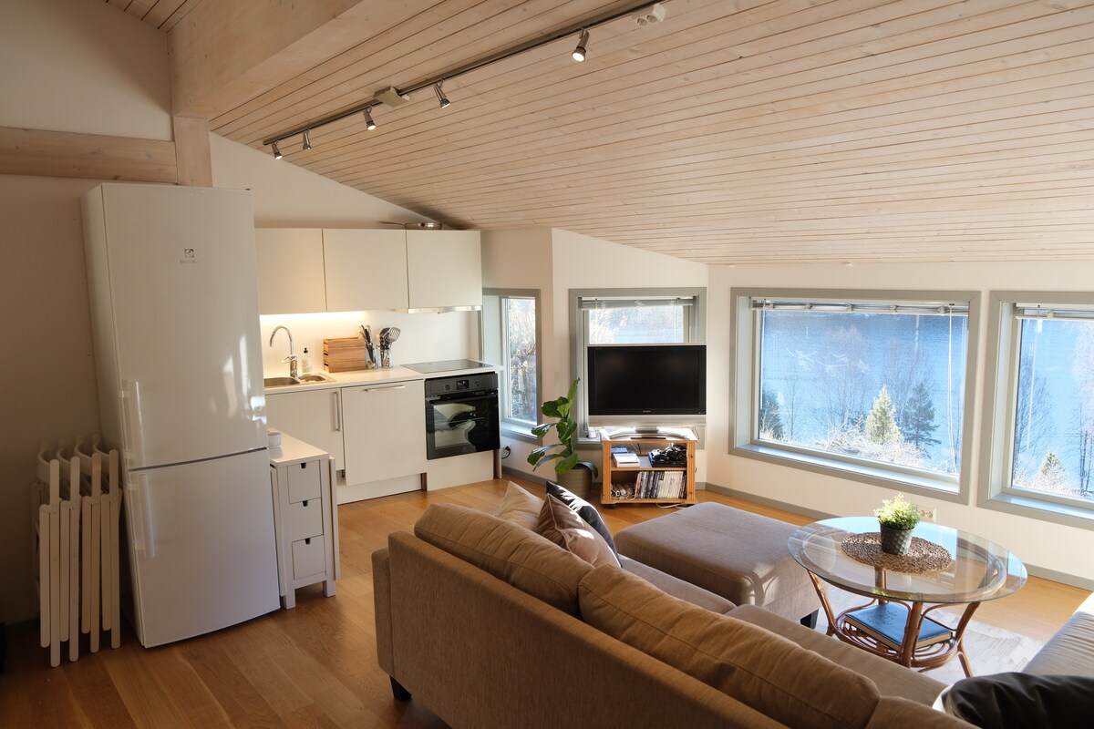 Acogedor apartamento para dos personas con hermosas vistas al fiordo se alquila por un mínimo de 2 días. El apartamento está equipado con dos camas de 90x200 que se pueden configurar para una cama doble, muebles de exterior, estufa con inducción y horno, nevera con congelador, cafetera, hervidor y varios cubiertos/otros equipos de cocina (no lavavajillas), internet, canales de parabola, ducha/inodoro, calefacción en pisos en todo el apartamento. El apartamento está en nuestro huerto de manzanas en un entorno rural.