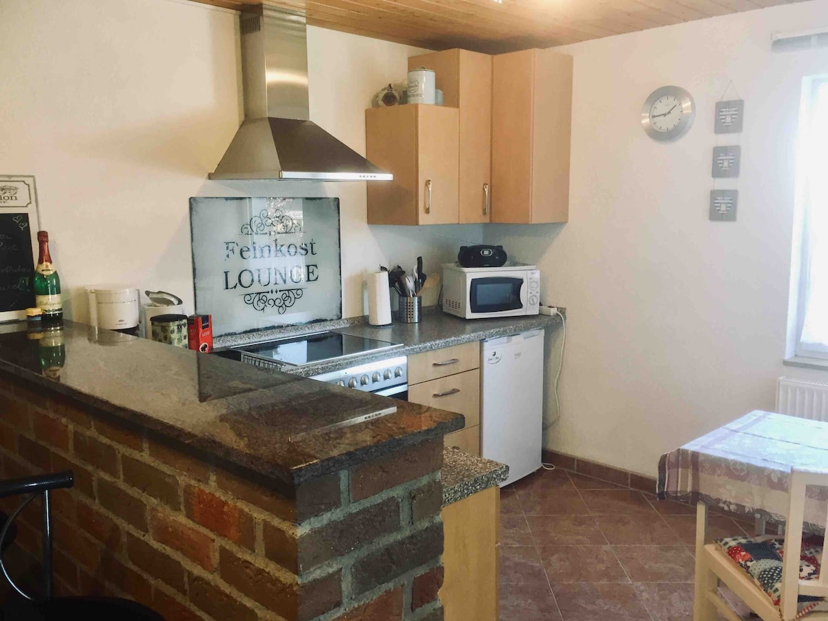 El apartamento de 70 m² está ubicado en la planta baja en una ubicación tranquila e idílica en nuestra granja de tres lados. Desde la sala de estar, entras en la terraza . Puedes caminar a través de los viñedos en 15 minutos y llegar al Seußlitzer Schloß. El Elbradweg está a solo 400 m de nosotros. Estacionamiento para autos así como el uso de 2 bicicletas es gratuito , esto también se aplica al almacenamiento de sus bicicletas y al estadio de carga asociado. Moritzburg, Meissen y Dresde son excelentes destinos de excursión.