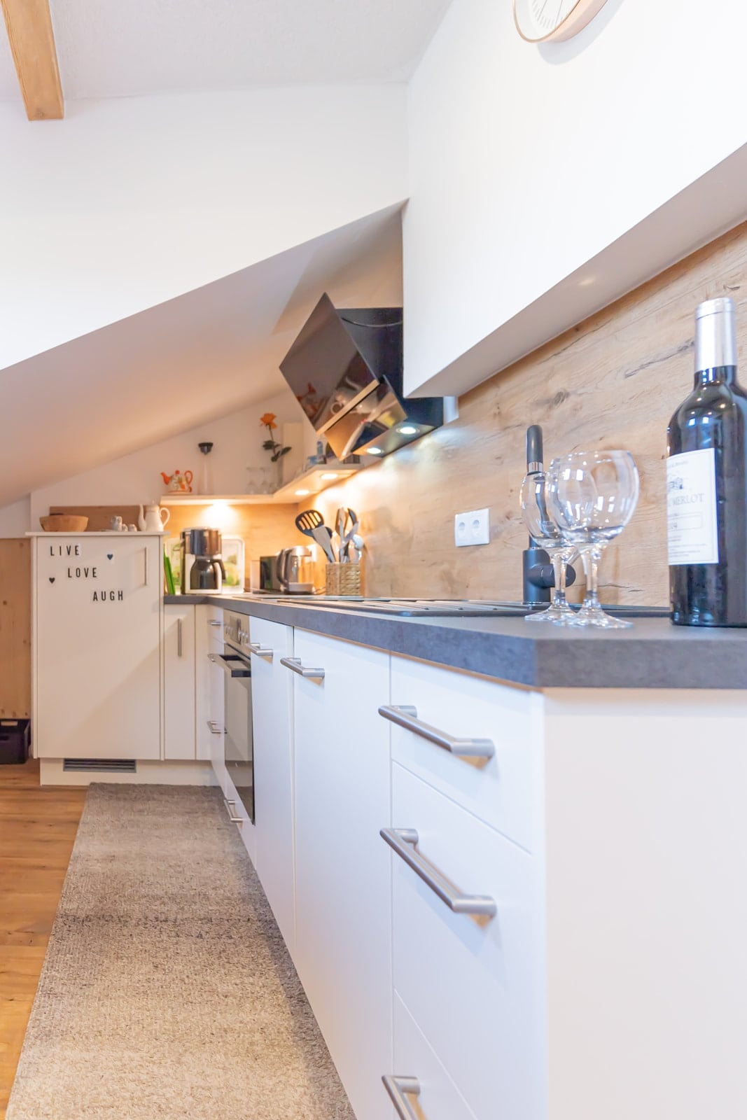 Nuestro apartamento está construido en 2016 y nos encantó diseñar las habitaciones, el equipamiento y la decoración. Se encuentra en la planta baja de nuestra casa y tiene una entrada independiente, una habitación adicional para esquís/botas de montaña, una entrada adicional y una conexión directa con la terraza y el jardín. El apartamento está totalmente equipado y la vista a las hermosas montañas que te rodean se puede disfrutar sentado en el sofá :) Solo tienes que probar y sentir la sensación "hogareña" en nuestra casa...