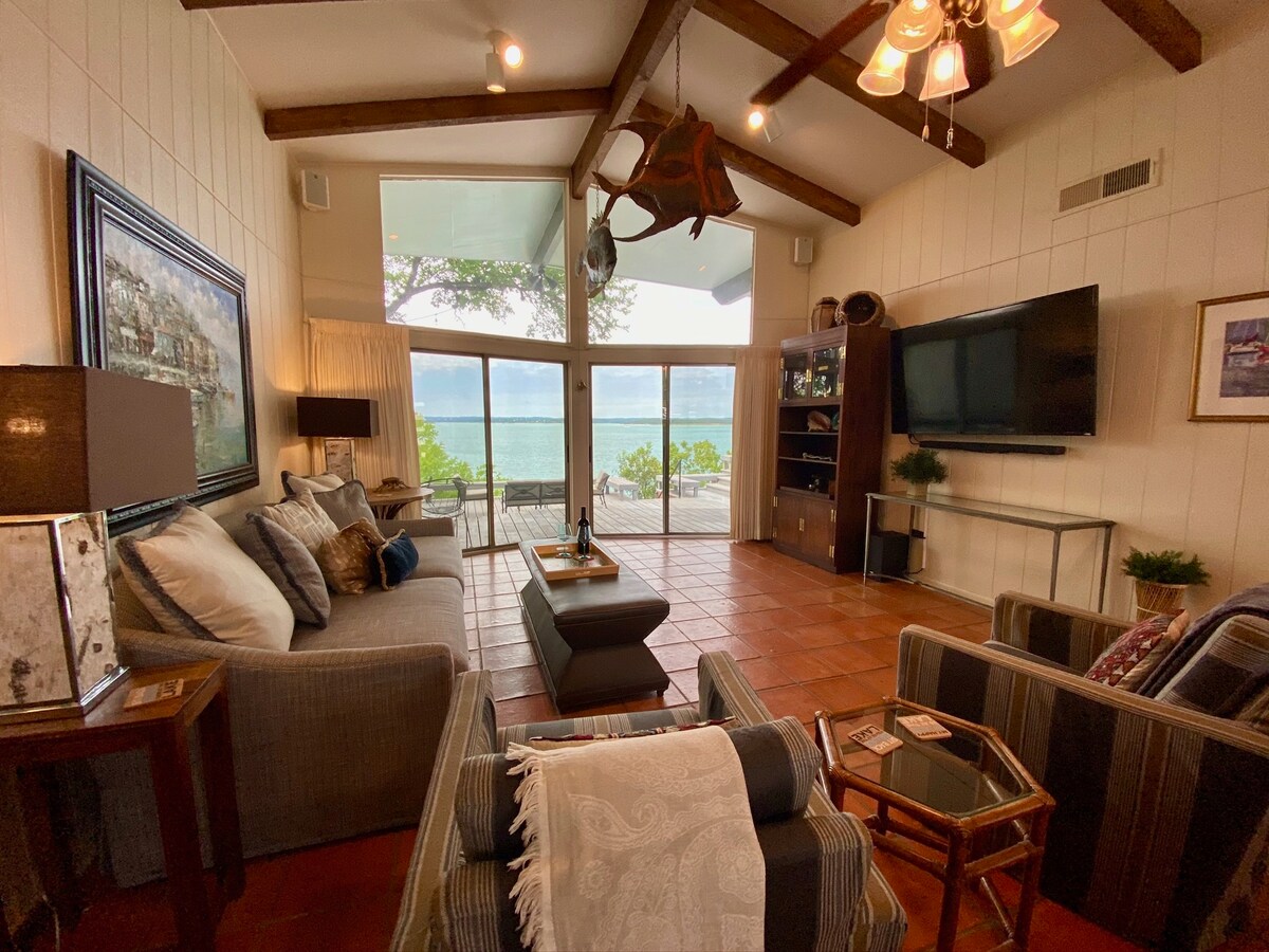 Descubre uno de los secretos mejor guardados de Texas... ESTA casa frente al lago en la orilla sur de Canyon Lake. Totalmente amueblado, tres dormitorios y dos baños. Cuenta con un diseño abierto y luminoso, grandes puertas correderas de vidrio con impresionantes vistas, una enorme terraza, patio junto al lago de piedra arenisca, una playa privada de guijarros, aletas de clase mundial y acceso DIRECTO al agua. A poca distancia en auto de Gruene y New Braunfels. A pocos minutos del anfiteatro Whitewater, Camp Fimfo y el río Guadalupe.