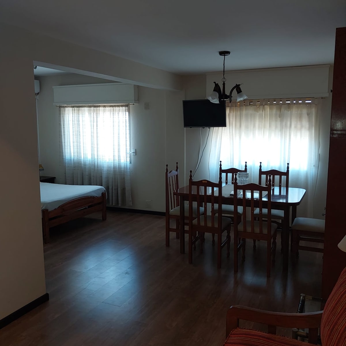 Departamento 3 ambiente amplio y luminoso. Cómodo para 4 personas. Con un patio y quincho con parrilla para disfrutar de un atardecer con unos ricos mates y preparar ese fueguito para una rica barbacoa o asado.