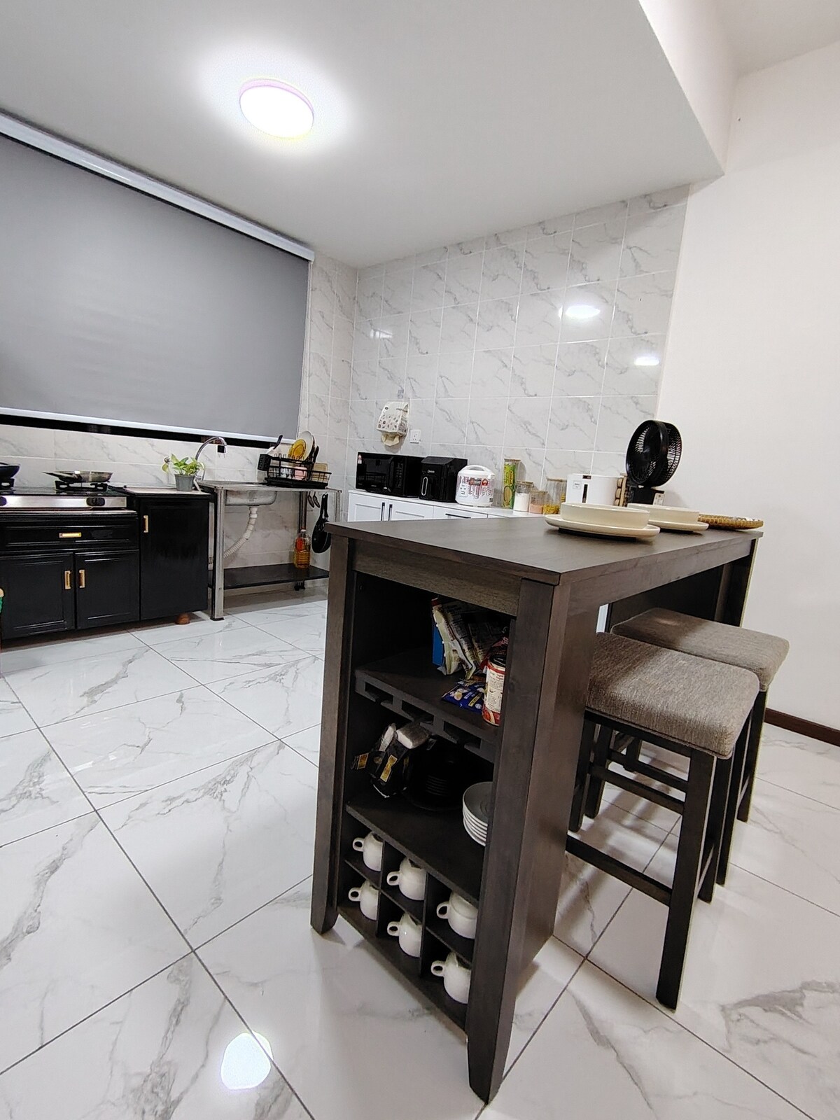 Casa de un piso con 3 dormitorios y media habitación individual 🛏 Habitación principal: cama tamaño queen con baño adjunto + 2 Sejadah (alfombra de oración) 🛏 Habitación 2: cama tamaño queen 🛏Habitación 3: cama individual súper (Las habitaciones 2 y 3 comparten baño) 👨👩👧 Comodidad para 5, máximo 8 personas 🛋️ Colchón de piso adicional disponible bajo pedido (se aplica un cargo adicional) ❄️ Aire acondicionado en todos los dormitorios + sala de estar y comedor 📶 Wi-Fi gratis 🍳 Cocina: nevera, cocina de inducción, tostadora de pan, filtro de agua (fría/caliente), arrocera, secador de pelo, plancha y tabla.