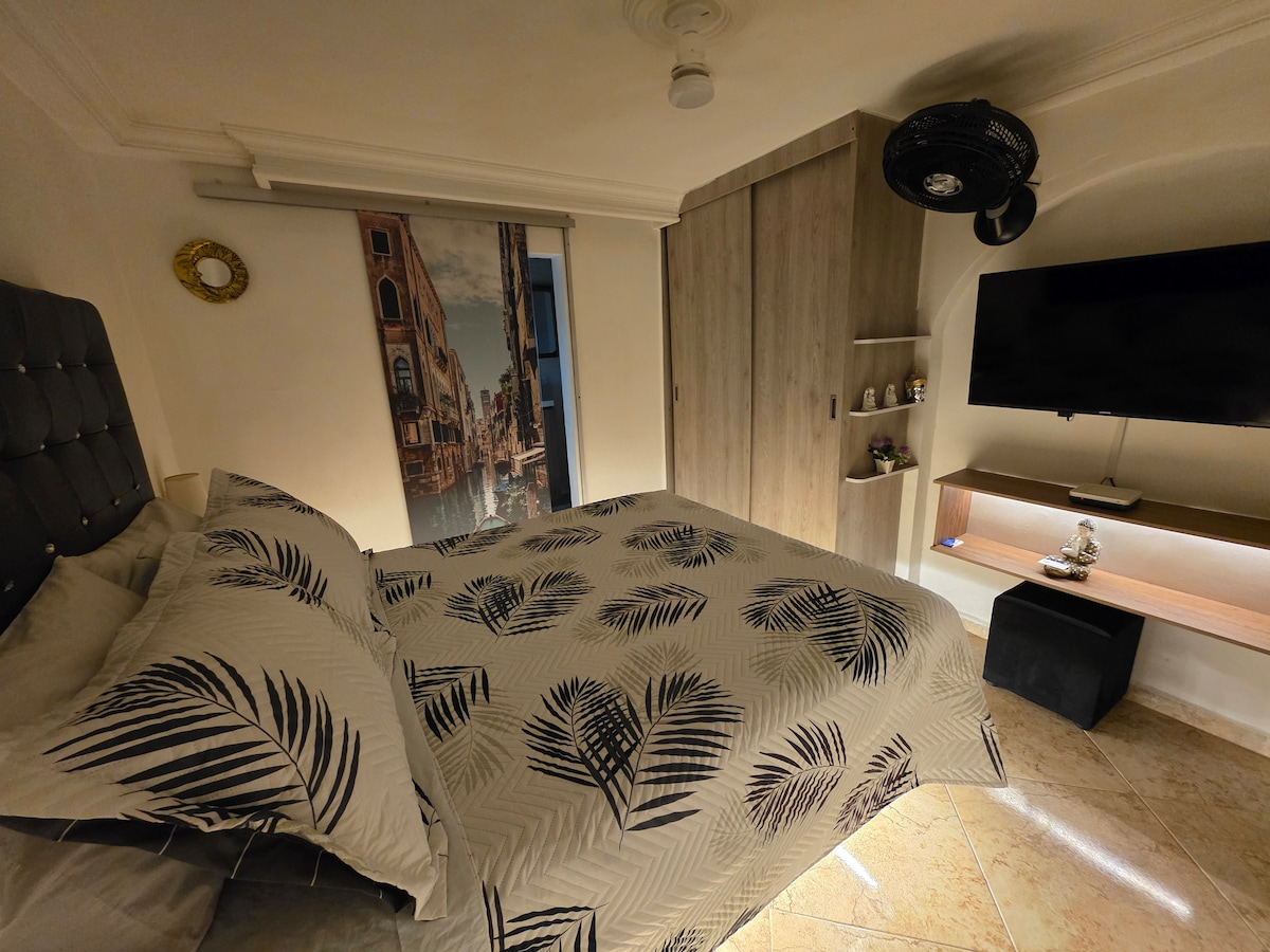 Ubicado en un barrio seguro y tranquilo, nuestro estudio es perfecto para aquellos que buscan una estadía relajada y central. Cuenta con: Cama doble cómoda Closet amplio Ducha con agua caliente Cocina dotada Ventilador A solo unos pasos de lugares emblemáticos como el Estadio Atanasio Girardot, el barrio El Poblado y la zona rosa. Nuestro barrio es residencial y tranquilo, ideal para descansar y relajarte. Características: - Capacidad para 2 personas - 1 baño - 1 cocina - Wi-Fi - TV