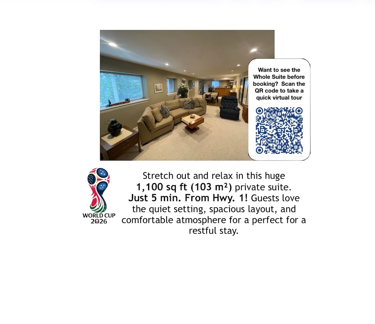 ¡Suite espaciosa y privada con entrada independiente!