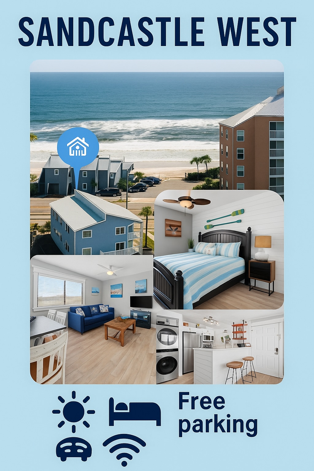 Beachside Bliss es una casa adosada de 2 pisos. Es *no* un condominio en un complejo de gran altura. Tendrás una terraza privada que se abre directamente a la playa (literalmente simplemente sales por la puerta corrediza de vidrio). No tendrás que estacionar en un enorme estacionamiento de concreto (estacionas justo afuera de la puerta principal), no tendrás que esperar interminablemente por ascensores muy ocupados y no tendrás que compartir la playa con los miles de otros residentes del condominio típicos en una comunidad de gran altura. ¡Esto realmente es 'felicidad'!