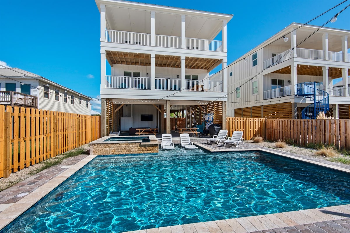 Beautiful, 4 level, 8 bedroom 6 1/2 bath oceanfront home in a gated community with a private heated pool. This 4700sqft home has very large bedrooms, private bathrooms, and generous closets (can fit pack n plays!). Elevator, grill, and much more! Family friendly, PET friendly, and we offer luxury services for food delivery, baby, beach necessities! Magnificent sugar sand beaches and ocean views every floor. F.B. page tracks all updates to home; search for "edenswaters". Will Price Match!