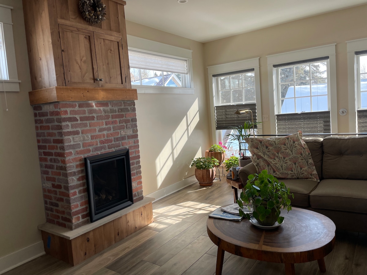 Sé nuestro huésped en un nuevo y luminoso apartamento tipo carruaje sobre el garaje. Calefacción radiante cálida en el suelo y chimenea de gas para noches acogedoras. Se siente espacioso con muchas ventanas y techos de 9 pies. Siéntete como en casa con cocina completa, lavadora/secadora, wifi, Netflix, Apple+ y televisión por cable Spectrum. Forma parte de la comunidad de Gunnison pero alójate en una excelente ubicación para acceder a todo lo que Gunnison-Crested Butte tiene para ofrecer. A poca distancia a pie de tiendas/restaurantes de Main St, campus de WCU y transporte gratuito a Crested Butte.
