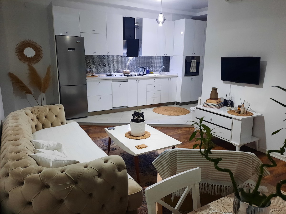 Relájate en esta escapada única y tranquila. Te invitamos a la soleada y luminosa Kobuleti. Apartamento en un edificio de nueva construcción cerca del mar. En el cuarto piso, recién renovado. 3 habitaciones, incluyendo 2 dormitorios y 1 sala de estar. cocina y baño. 2 balcones con vista lateral al mar. TV, wifi, refrigerador, aire acondicionado, lavadora. Todo el inventario se entregará en el lugar. Un hermoso patio con parques infantiles. ¡Te esperamos!