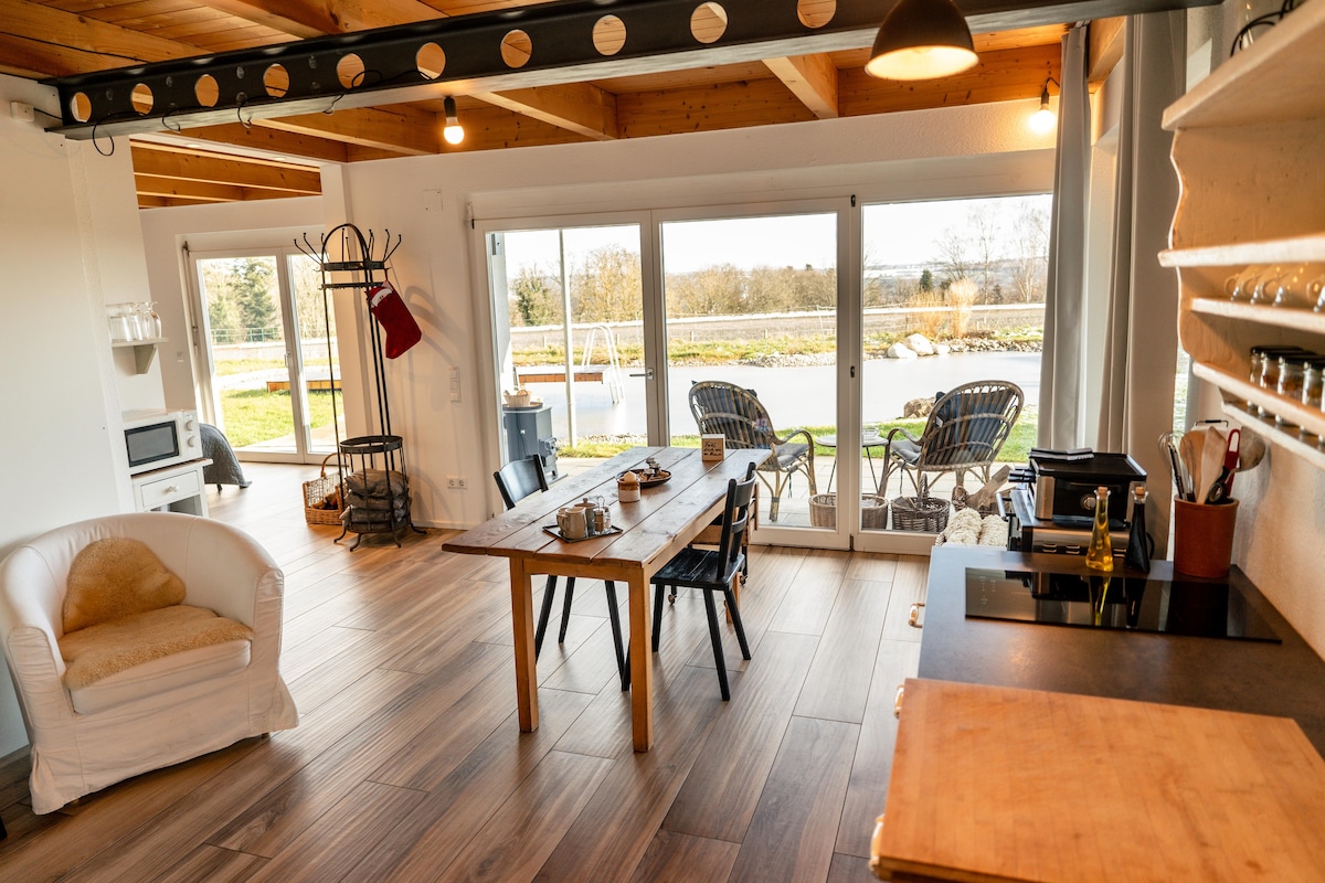 ¡Te damos la bienvenida a la acogedora y ecológica casa de madera “Herta” en el campo! A pocos pasos del límite del bosque se encuentra nuestra cabaña de madera con 3 habitaciones, que ofrece una estancia acogedora para un máximo de 4 huéspedes. Buscas un lugar relajante con un gran jardín y espacio para descansar. Nuestro lema: comodidad y relajación combinadas con la naturaleza y el deporte. 🌲 Hay dos bicicletas eléctricas disponibles para que las uses de forma gratuita y explores los alrededores.
