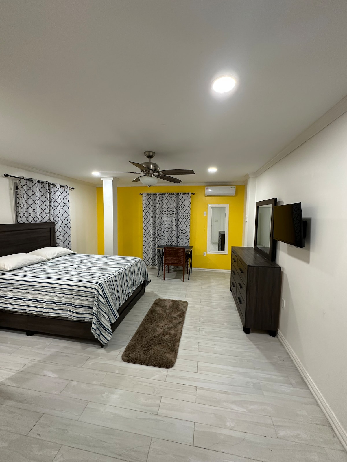 El apartamento viene cargado con todas las comodidades modernas que incluyen: aire acondicionado, cámaras de seguridad en el exterior, duchas frías y calientes, lavadora/secadora, asientos al aire libre, aparcamiento y cambio automático a energía de respaldo. Con restaurantes de comida rápida, supermercados y transporte en las inmediaciones, tu estancia será inolvidable. También ofrecemos información sobre excursiones locales y opciones de comida auténtica de Guyana.